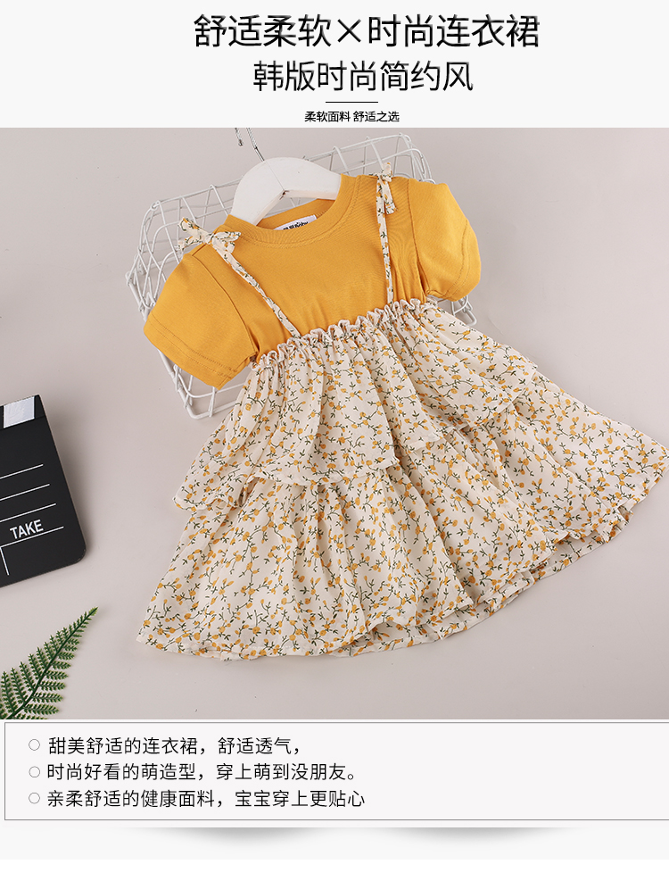 세련된 소녀의 쉬폰 꽃 원피스 여름 원피스 아기 소녀 가짜 투피스 공주 원피스 반팔 케이크 원피스 트렌디스토어 가기