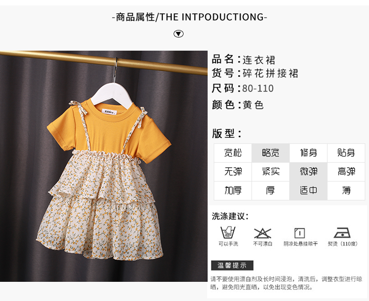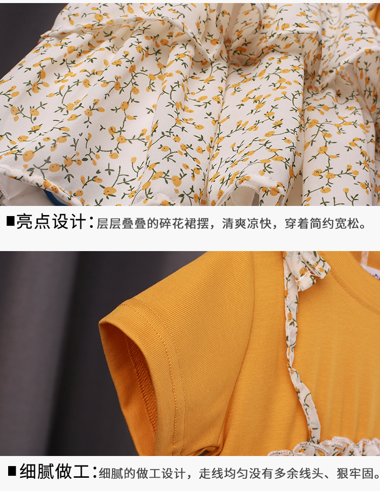 세련된 소녀의 쉬폰 꽃 원피스 여름 원피스 아기 소녀 가짜 투피스 공주 원피스 반팔 케이크 원피스 트렌디