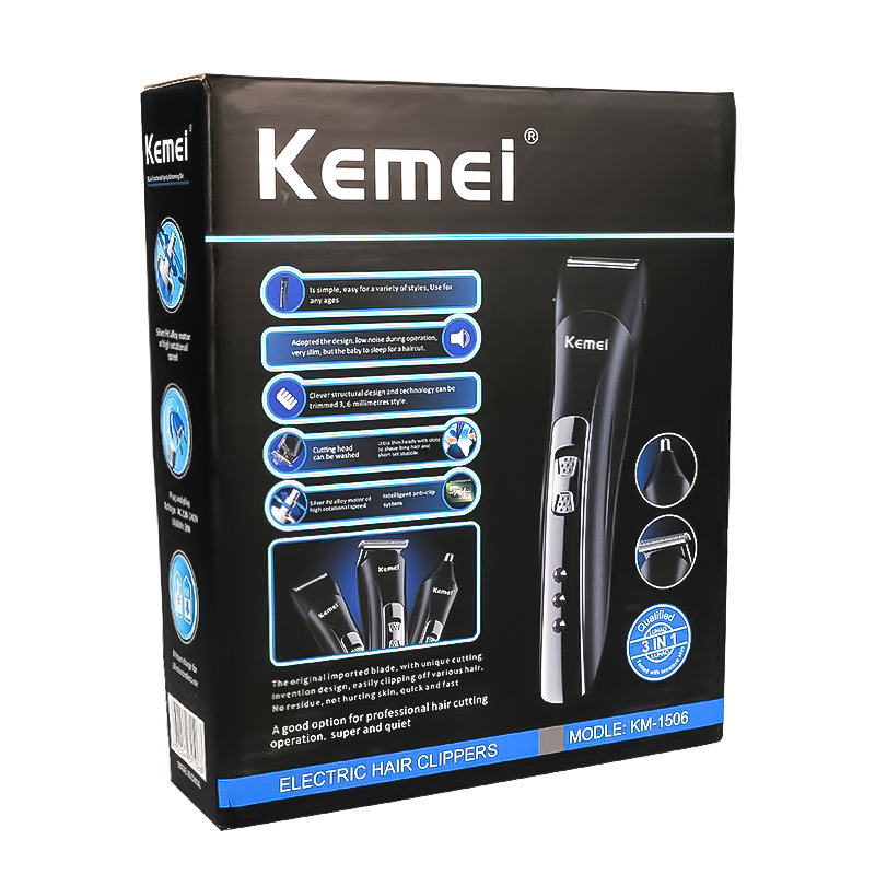 Kemei KM-1506 헤어 클리퍼 다기능 전문 전기 가정용 면도 코 헤어 리페어 3-in-1 전기 클리퍼스토어 가기