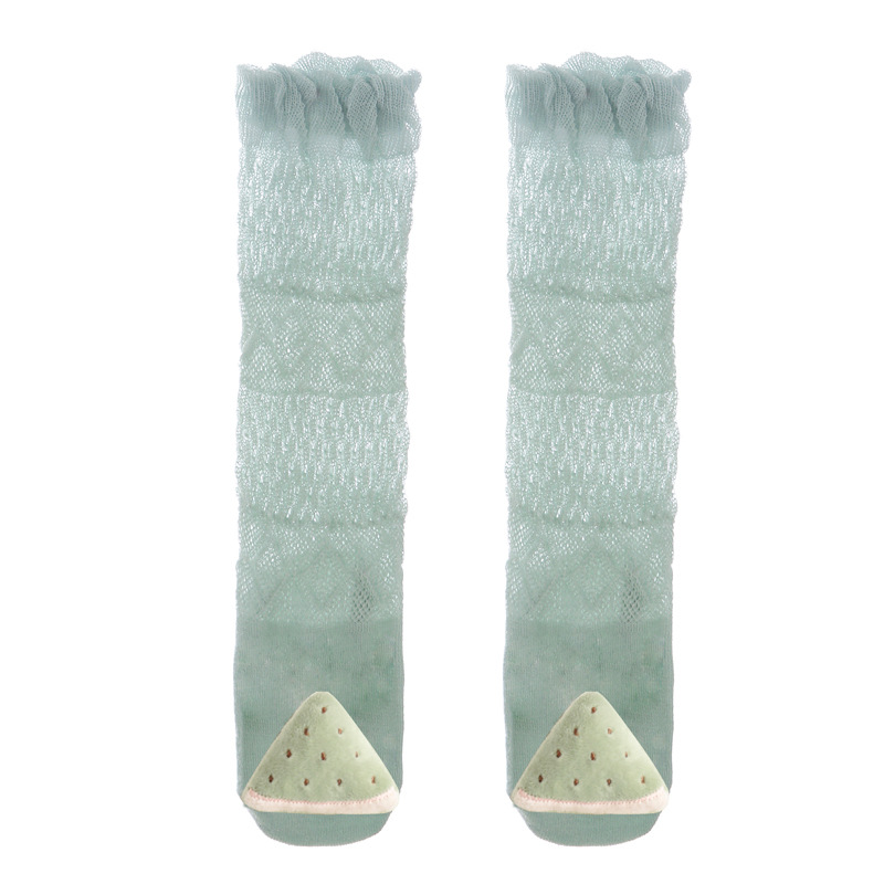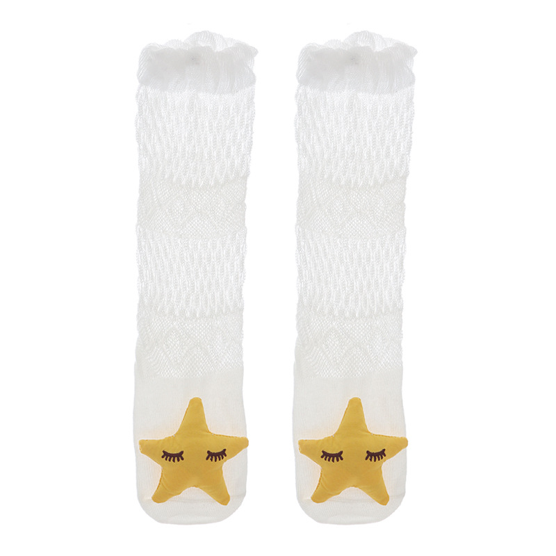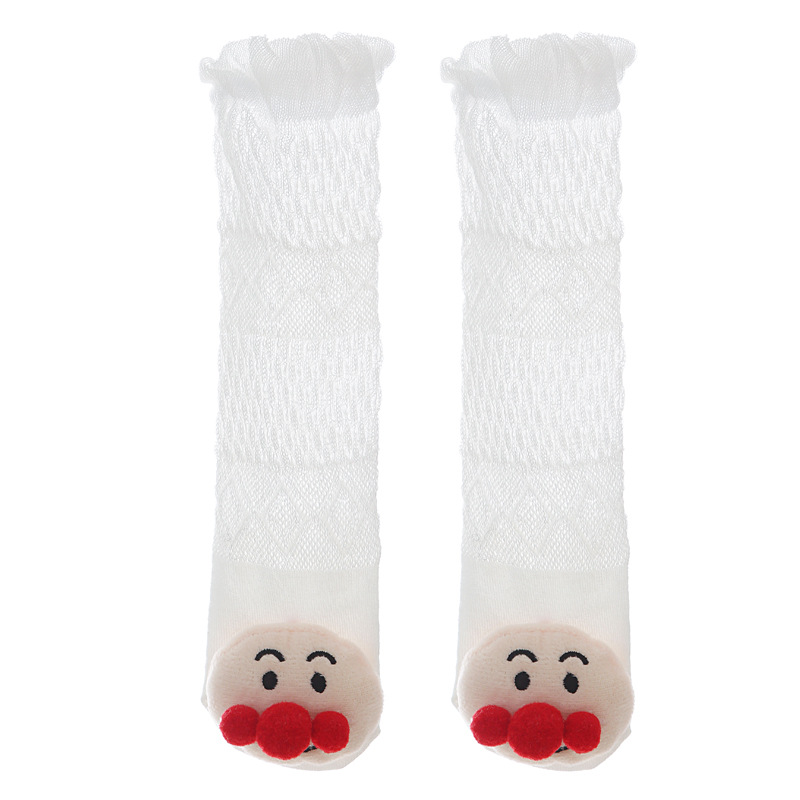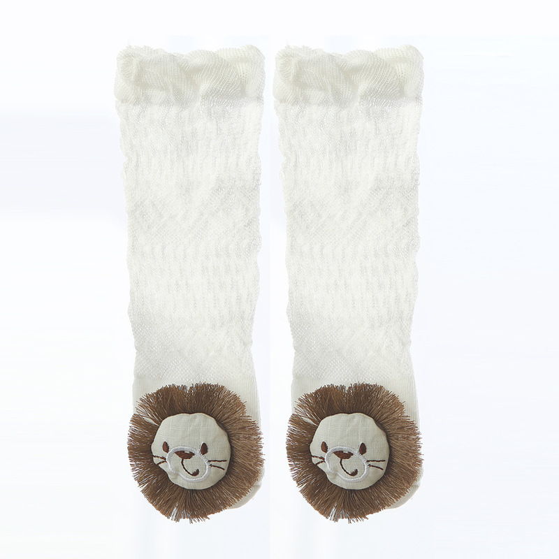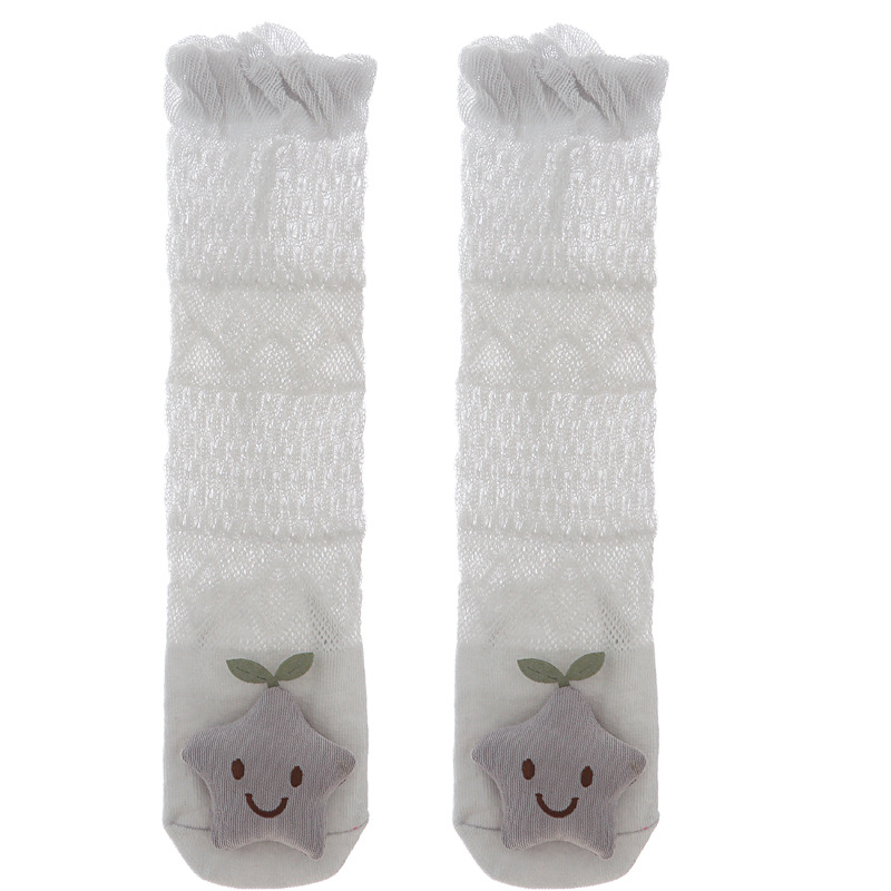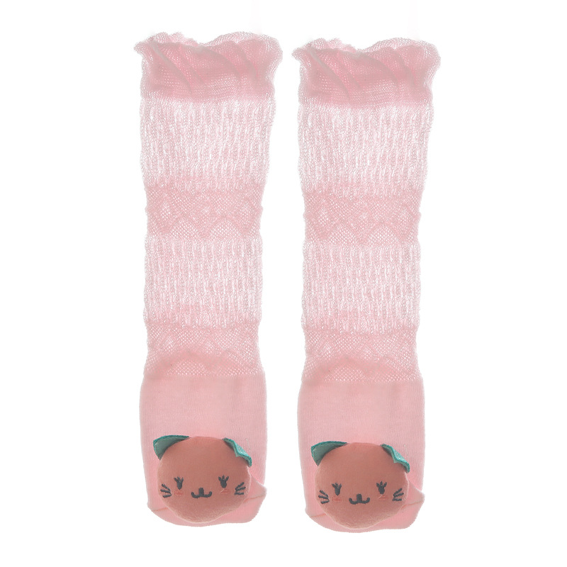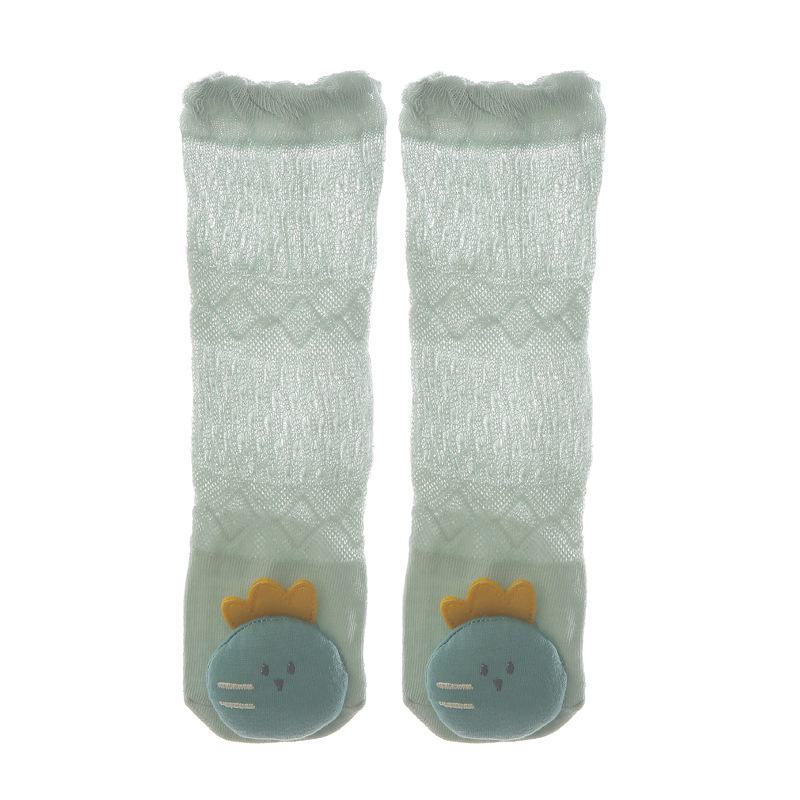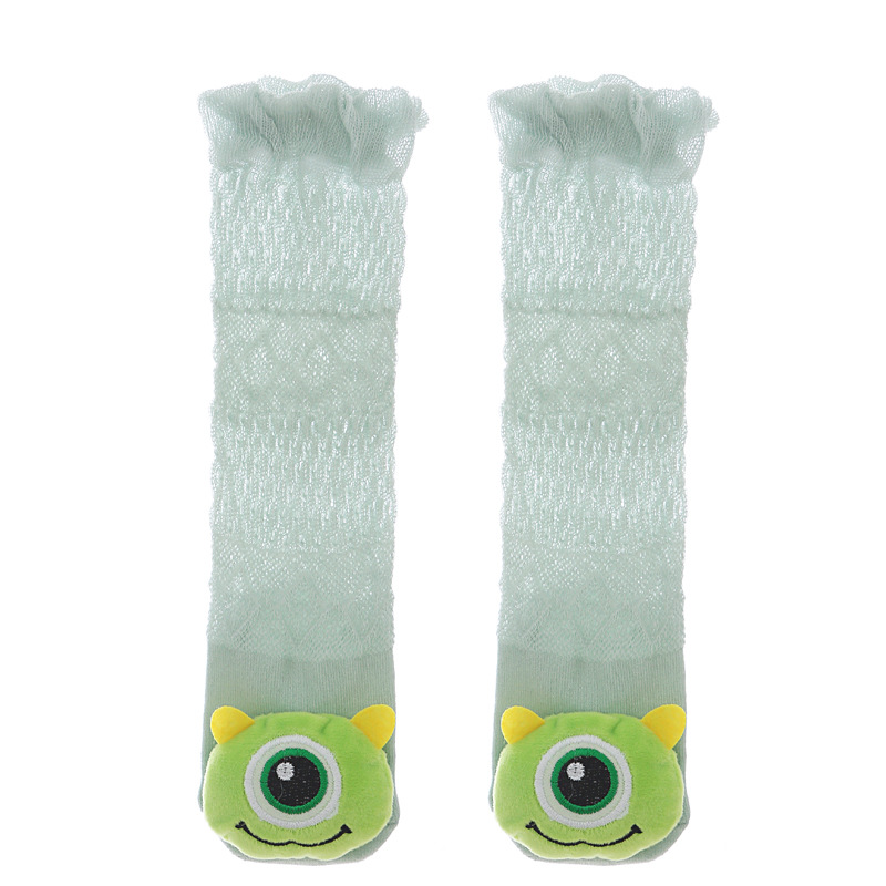 여름 얇은 아기 메쉬 모기 방지 양말 신생아 입체 만화 인형 무릎 양말 아기 느슨한 긴 튜브 양말