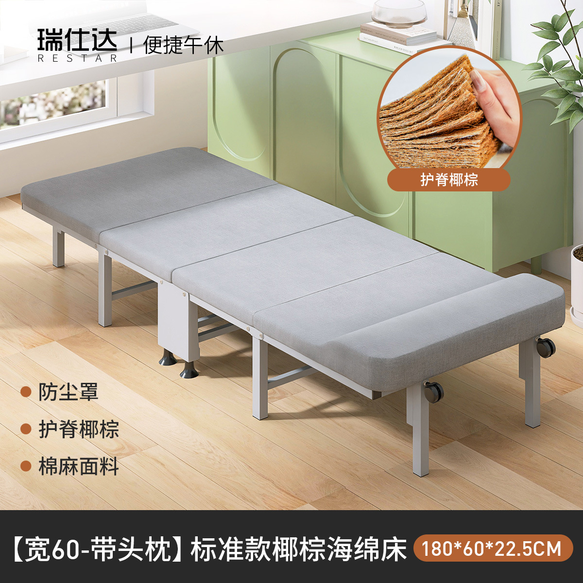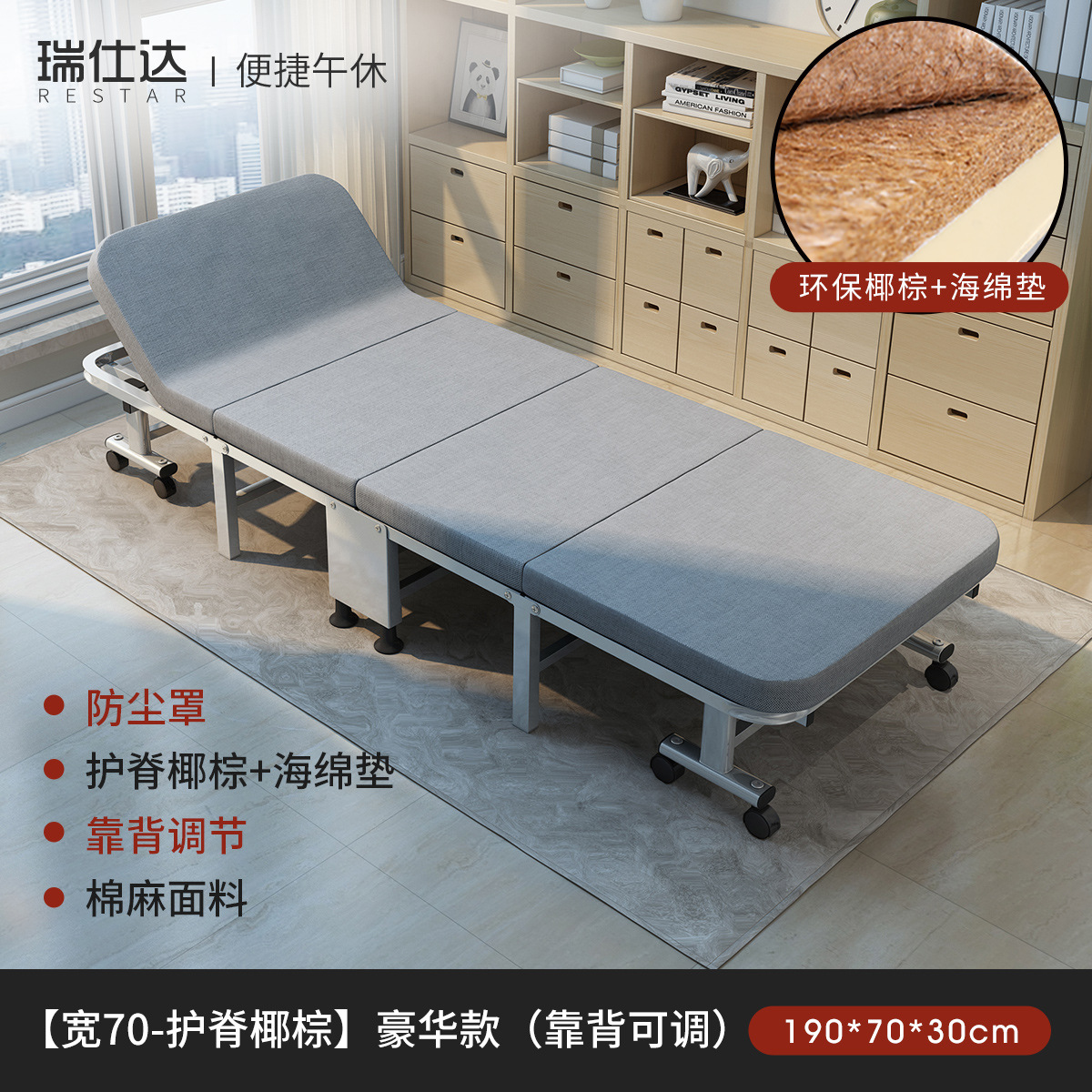 루이스타 접이식 침대 가정용 낮잠 사무실용 루이스타 싱글 캠핑 침대 간편한 하드보드 등받이 침대