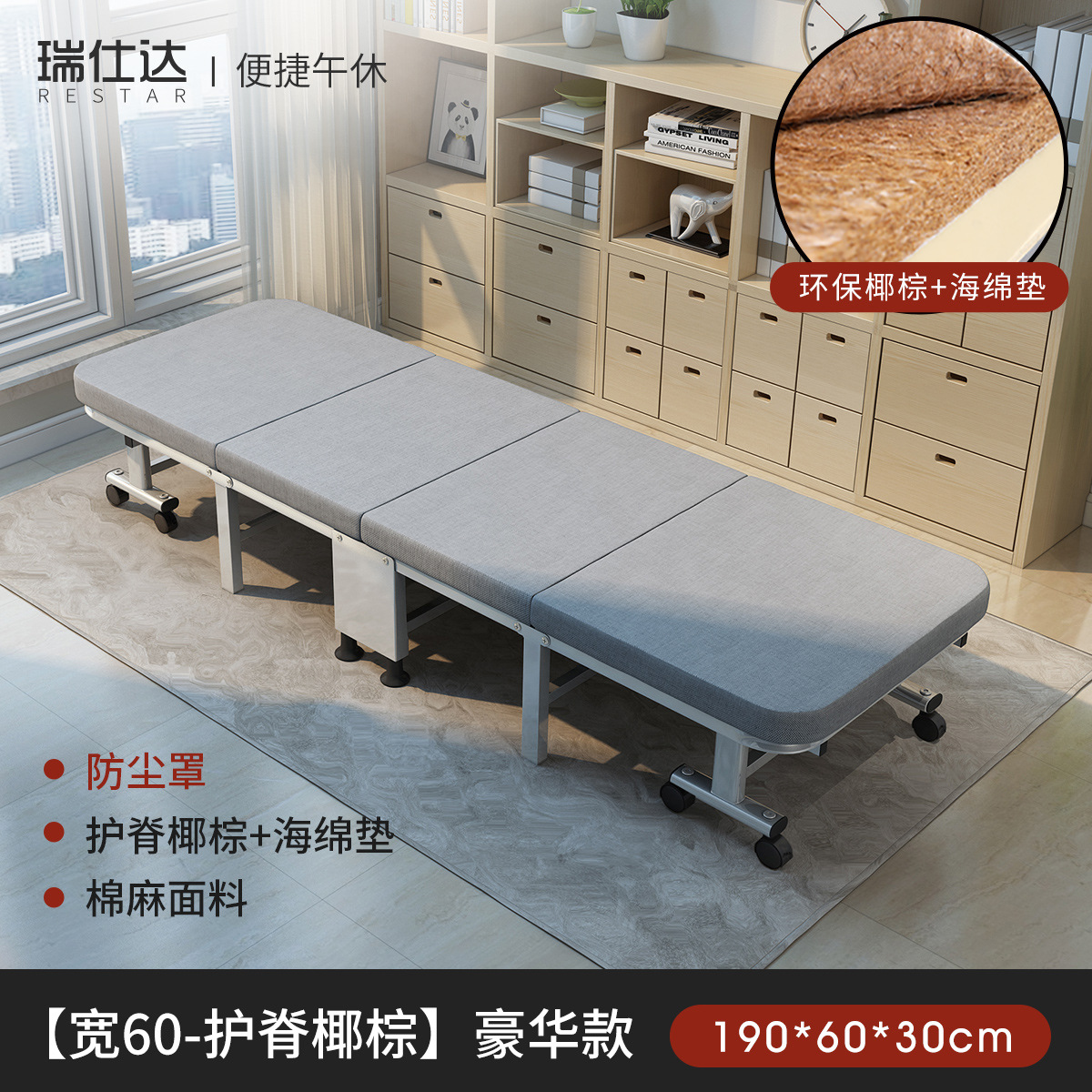 루이스타 접이식 침대 가정용 낮잠 사무실용 루이스타 싱글 캠핑 침대 간편한 하드보드 등받이 침대스토어 가기