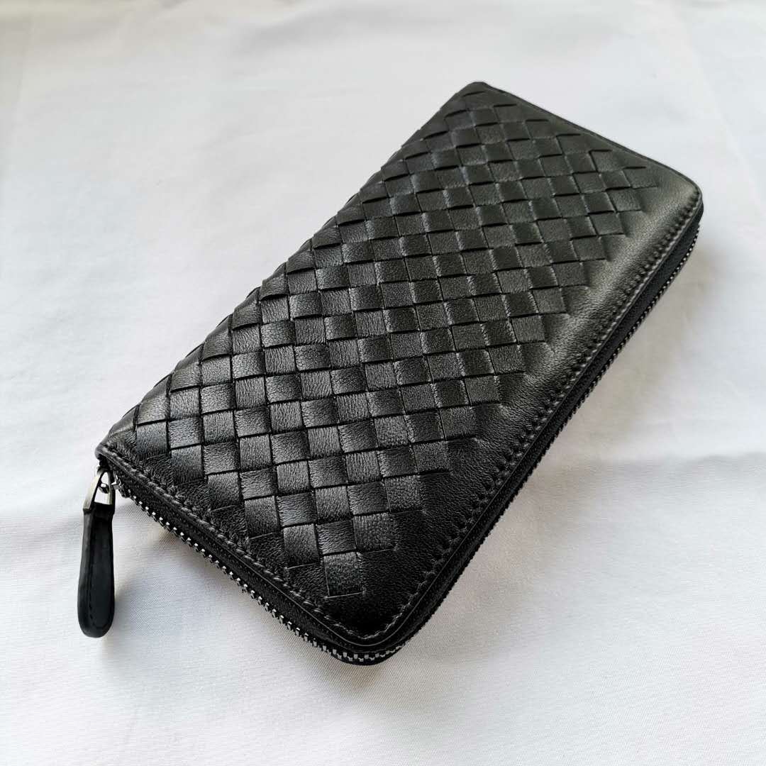 介绍:本产品采用高档羊皮手工编织制作,欧美风格,卡位,证件位,大钞位一应俱全!