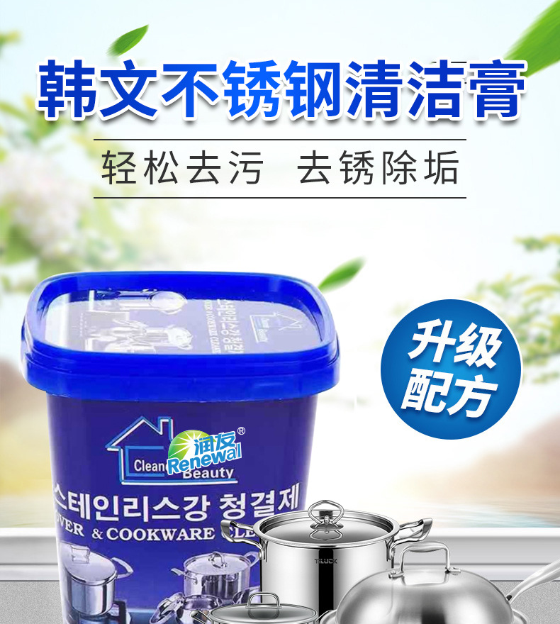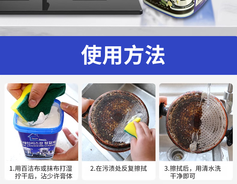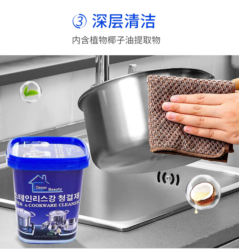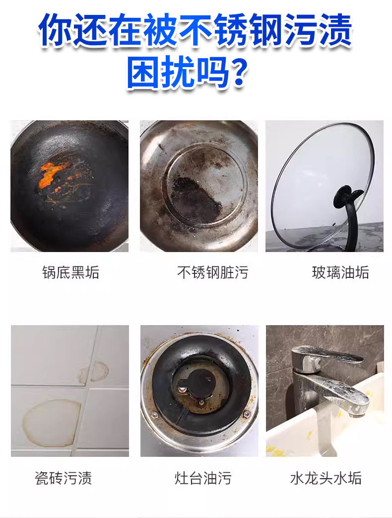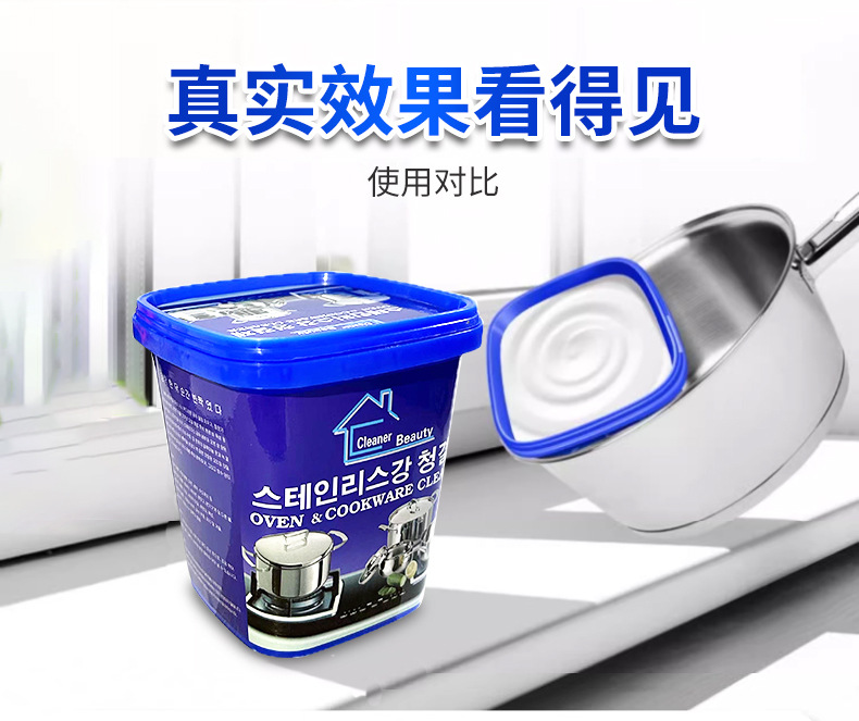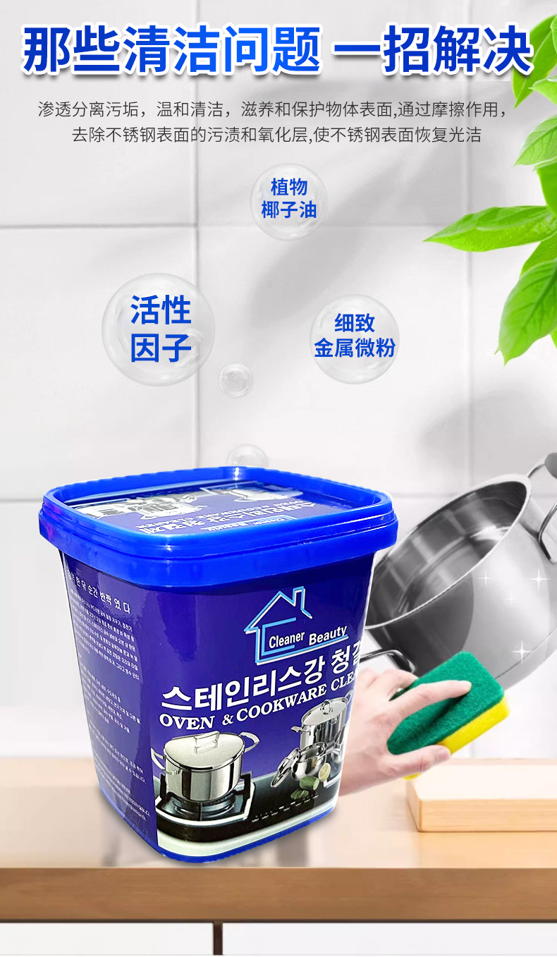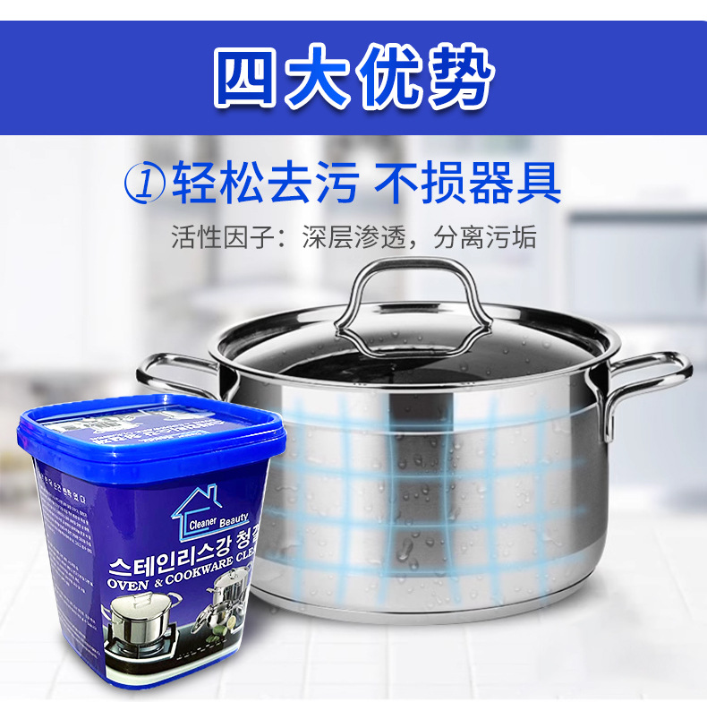 국경 스테인레스 스틸 청소 크림 냄비 하단 검은 제거 에이전트 무거운 기름 오염 유물 가정용 오염 제거 크림 다기능 클리너스토어 가기
