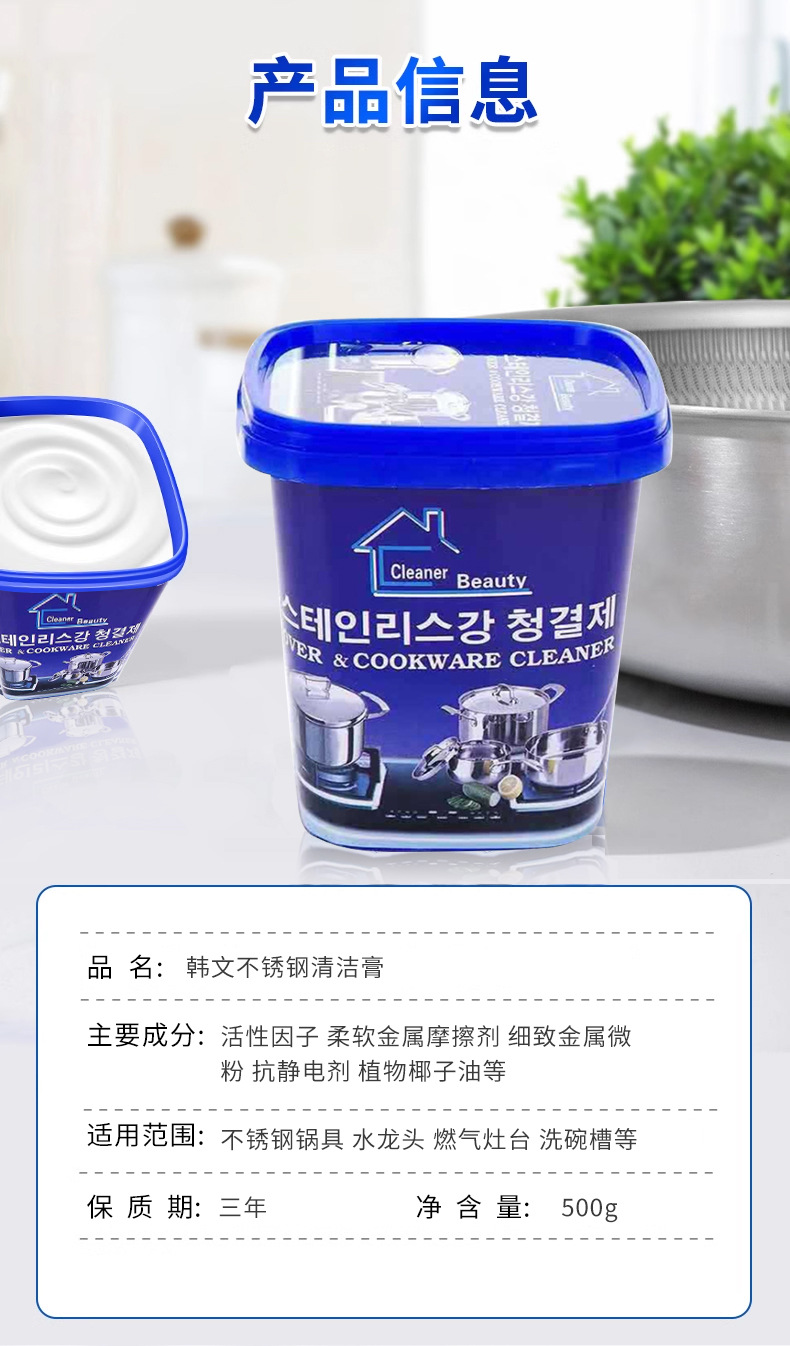 • 한국 스테인리스 청소 페이스트 500g*1병 [대외 무역 수출]
