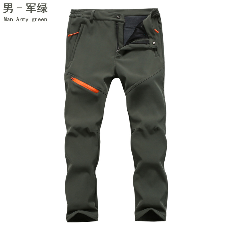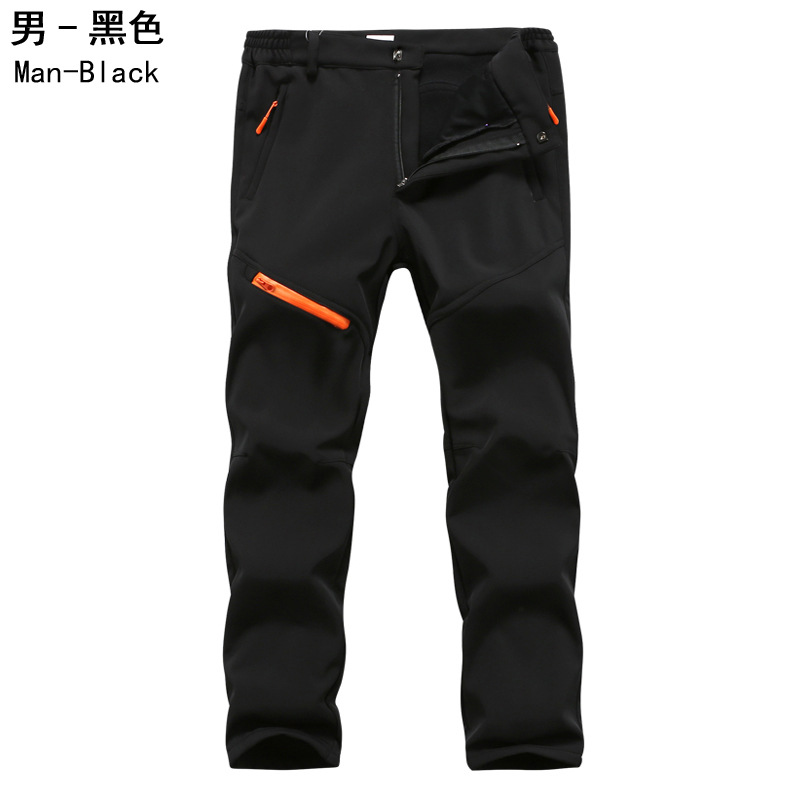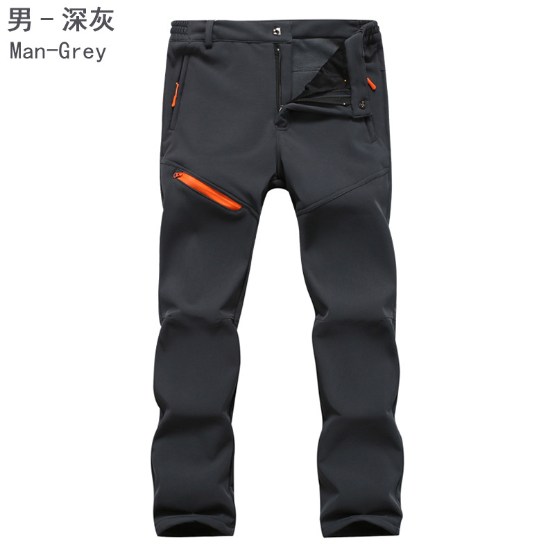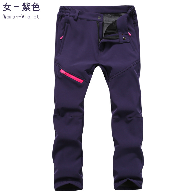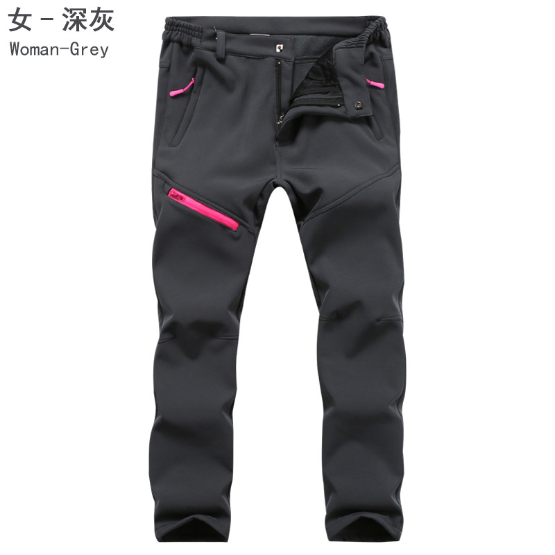 남자의 야외 기모 두꺼운 방수 방풍 등반 바지 여자의 겨울 따뜻한 바지 단색 크로스 보더스토어 가기