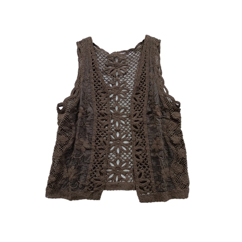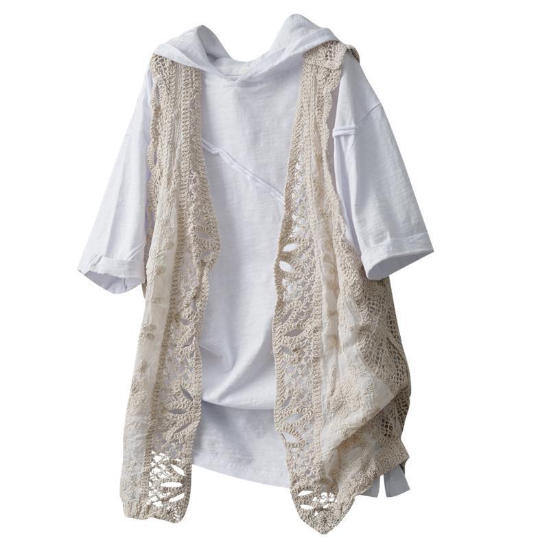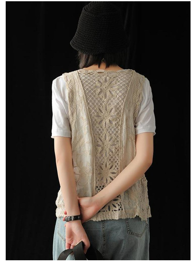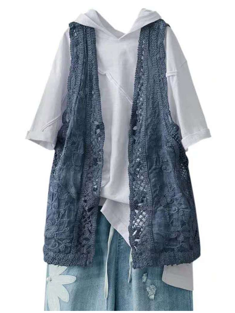 여름과 가을 중공 조끼 여자의 모든 매치 데님 난초 문학 레트로 코튼 린넨 레이스 니트 조끼 카디건 조끼 탑