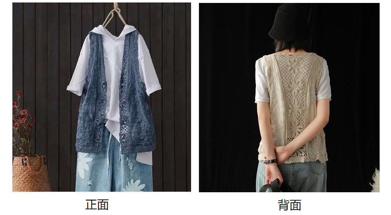 여름과 가을 중공 조끼 여자의 모든 매치 데님 난초 문학 레트로 코튼 린넨 레이스 니트 조끼 카디건 조끼 탑스토어 가기