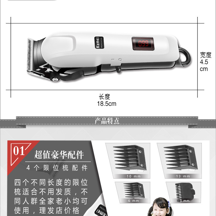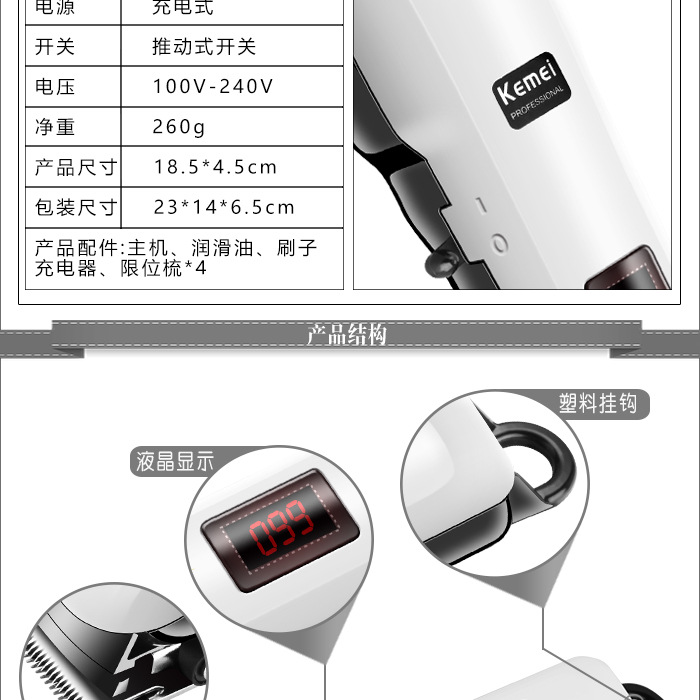 케메이 제조사 직판 KM-809A 전기 이발기 충전식 전기 클리퍼 도매 LCD 디스플레이스토어 가기