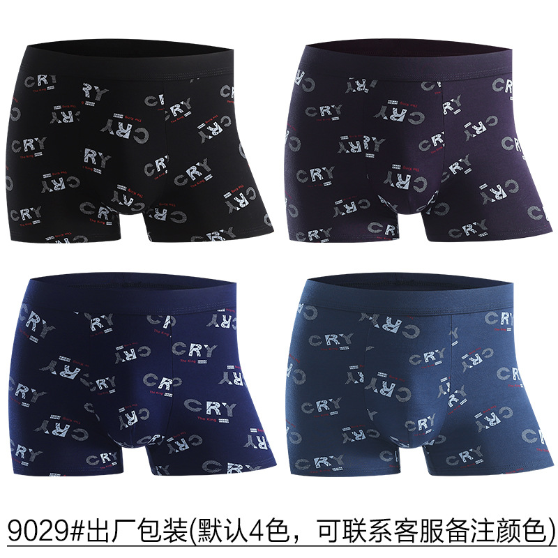Ping Kangle 남성 복서 속옷 헤드 모달 통기성 미드 웨이스트 청소년 편지 4 코너 반바지 공장 콘센트