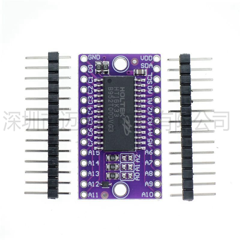 HT16K33是一个存储器映射和多功能LED控制器驱动器。高 该设备中的显示段号为128个模式(16个段和8个公共端),带有13 * 3(大)矩阵键扫描电路。HT16K33的软件配置功能使其适用于多种LED应用,包括LED模块和显示子系统。HT16K33与大多数微控制器兼容,并通过两线双向I2C总线进行通信。
