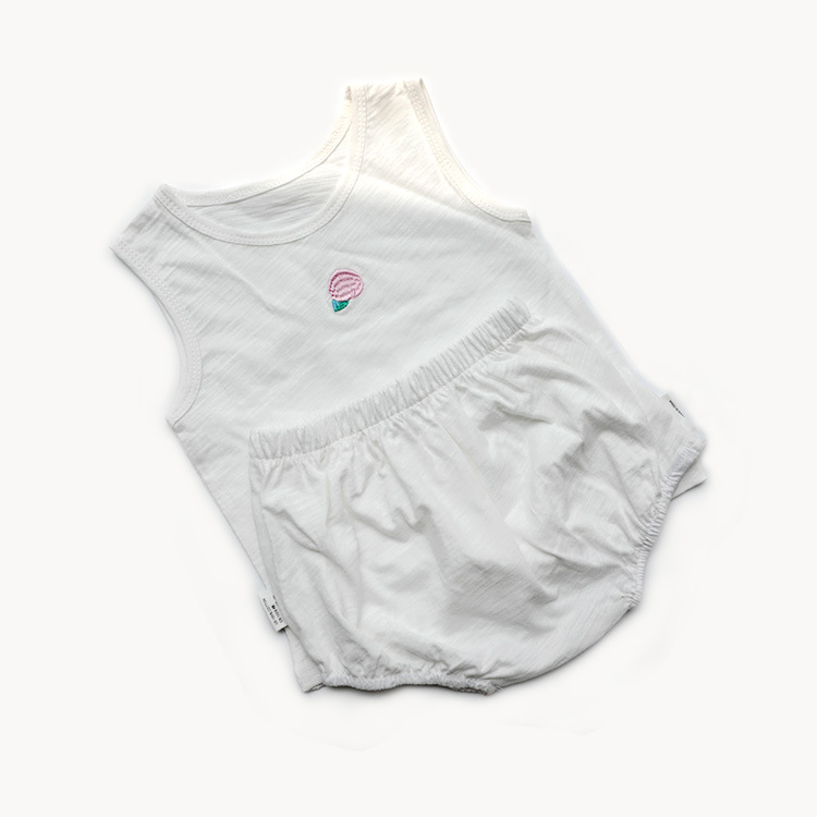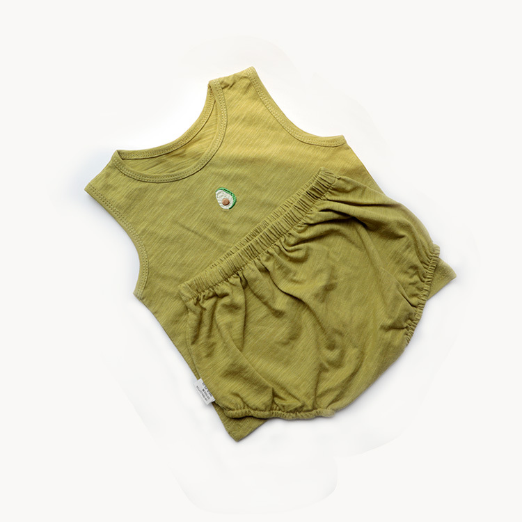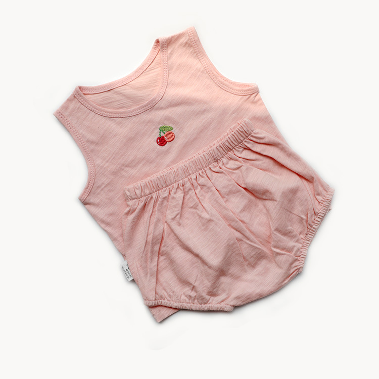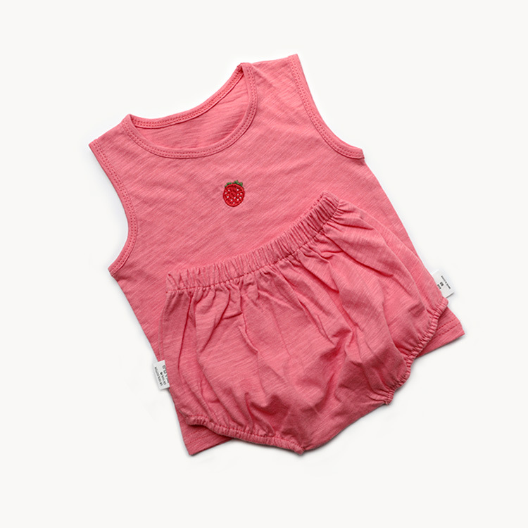 Minkymom2020 여름 면 어린이 조끼 삼각형 빵 바지 과일 자수 2 조각 세트