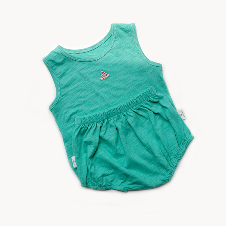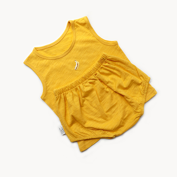 Minkymom2020 여름 면 어린이 조끼 삼각형 빵 바지 과일 자수 2 조각 세트스토어 가기