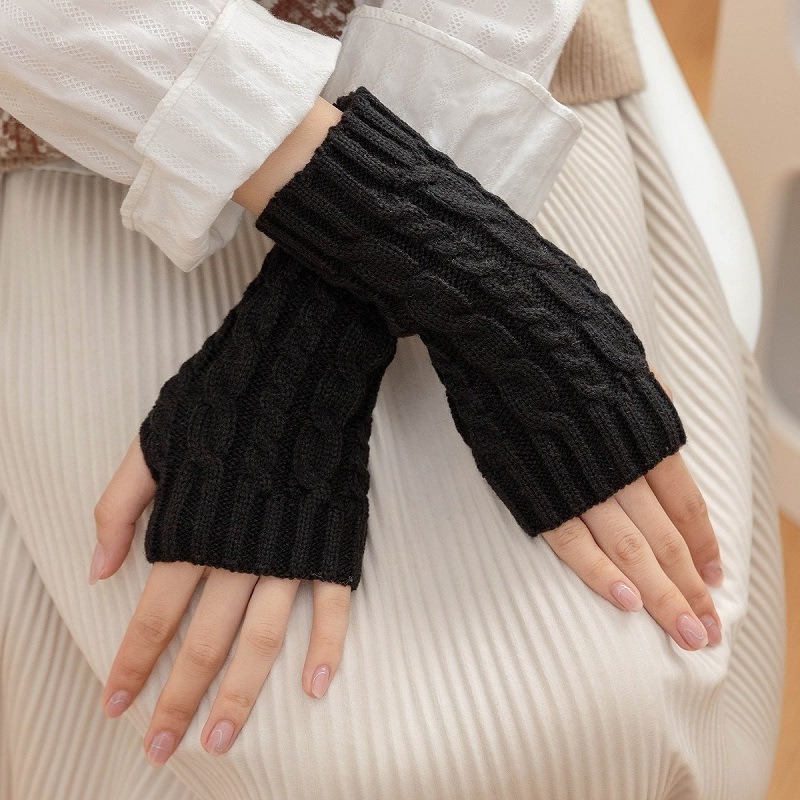 가을과 겨울 남성과 여성의 짧은 8 자 트위스트 패션 장갑 새로운 니트 울 따뜻한 반 손가락 오픈 손가락 장갑의 한국어 버전스토어 가기