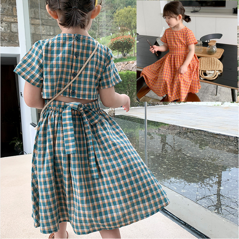 여아 체크무늬 허리끈 원피스 공주 드레스 25 여름 신상품 수출 아동복 도매 3-8세스토어 가기