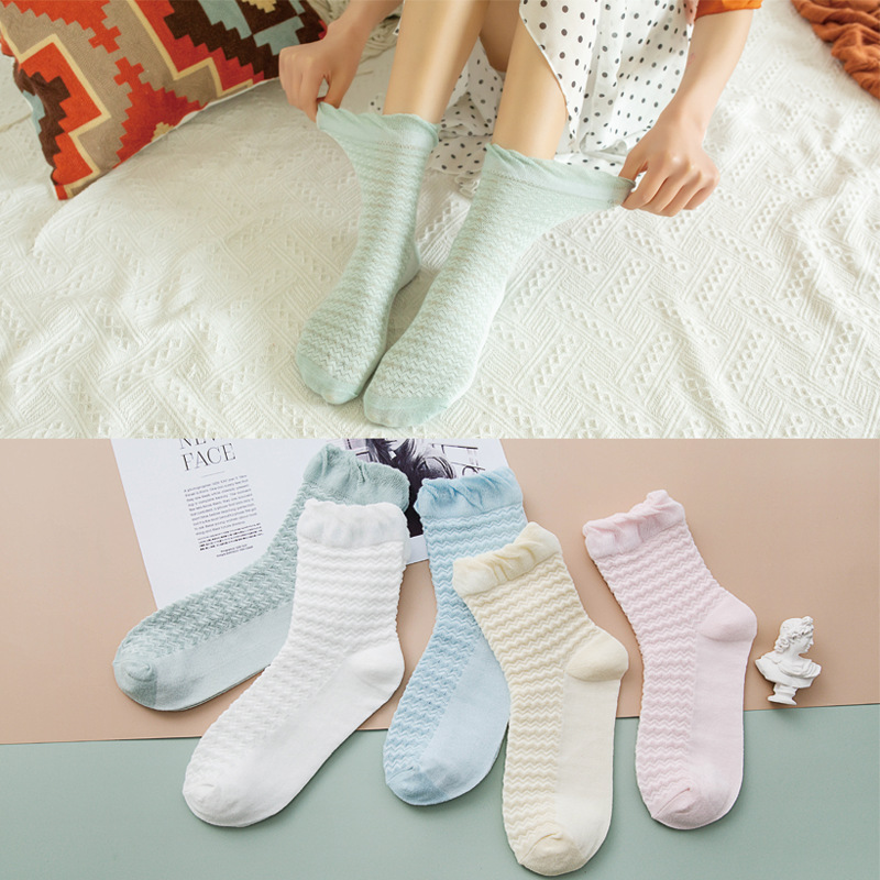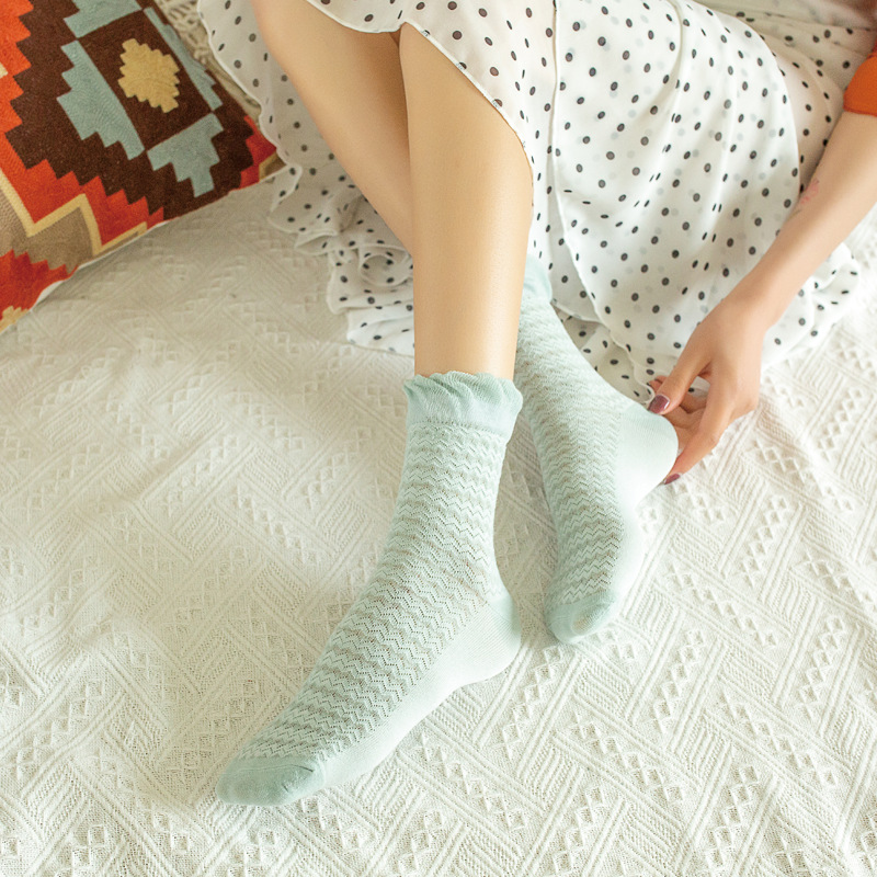 Yuezi 양말 봄과 여름 임산부 면 양말 미드 튜브 여성용 양말 단색 얇은 메쉬 느슨하고 끈이없는 임산부 양말