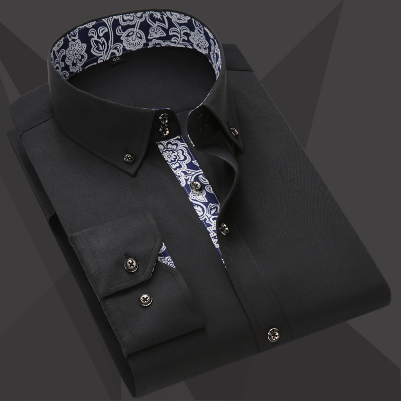 2024 새로운 한국 스타일 슬림 피트 남성 긴팔 셔츠 젊은 및 중년 비즈니스 캐주얼 파란색과 흰색 도자기 남성 셔츠 남성 의류스토어 가기