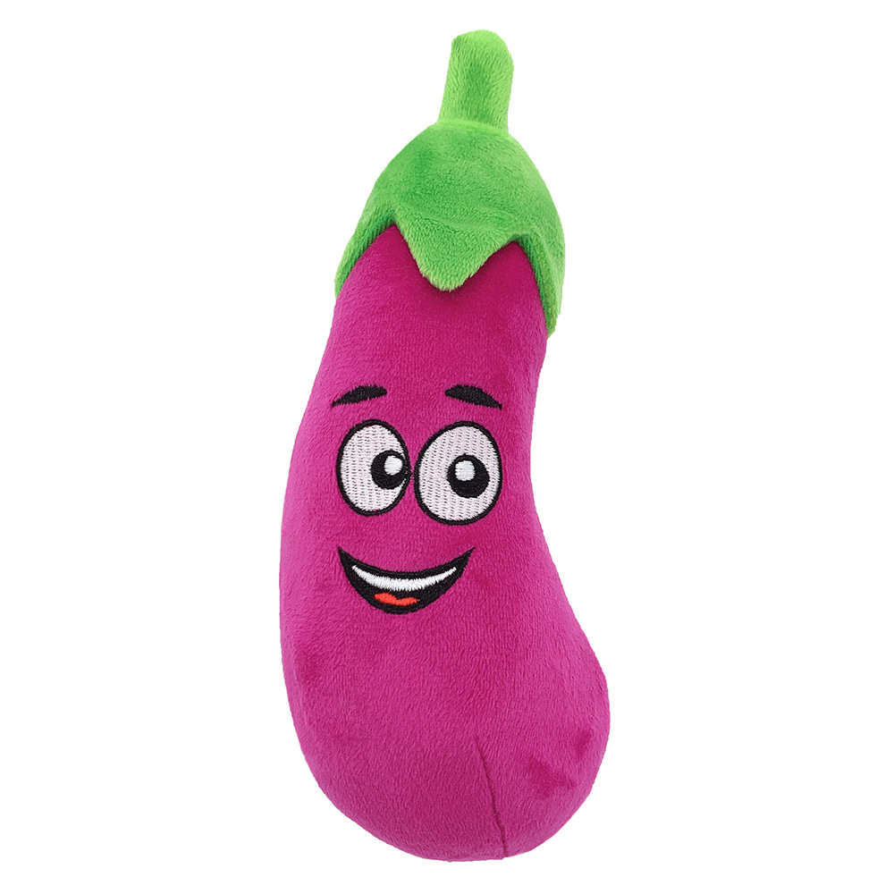 【名称】:毛绒填充蔬菜宠物玩具 吱吱发声茄子玉米狗玩具