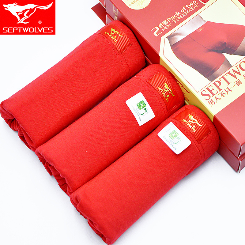 2 팩 일곱 늑대 박스형 남자의 대나무 섬유 사랑 플랫 팬츠 04107 레드 베밍니안 복서 팬티