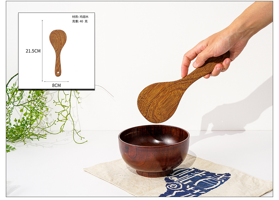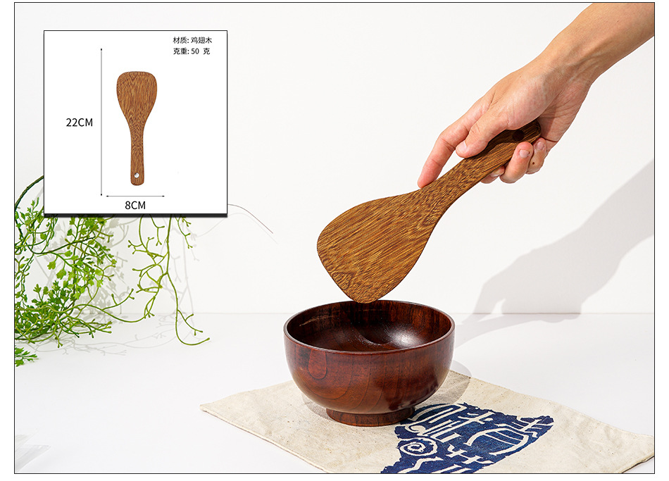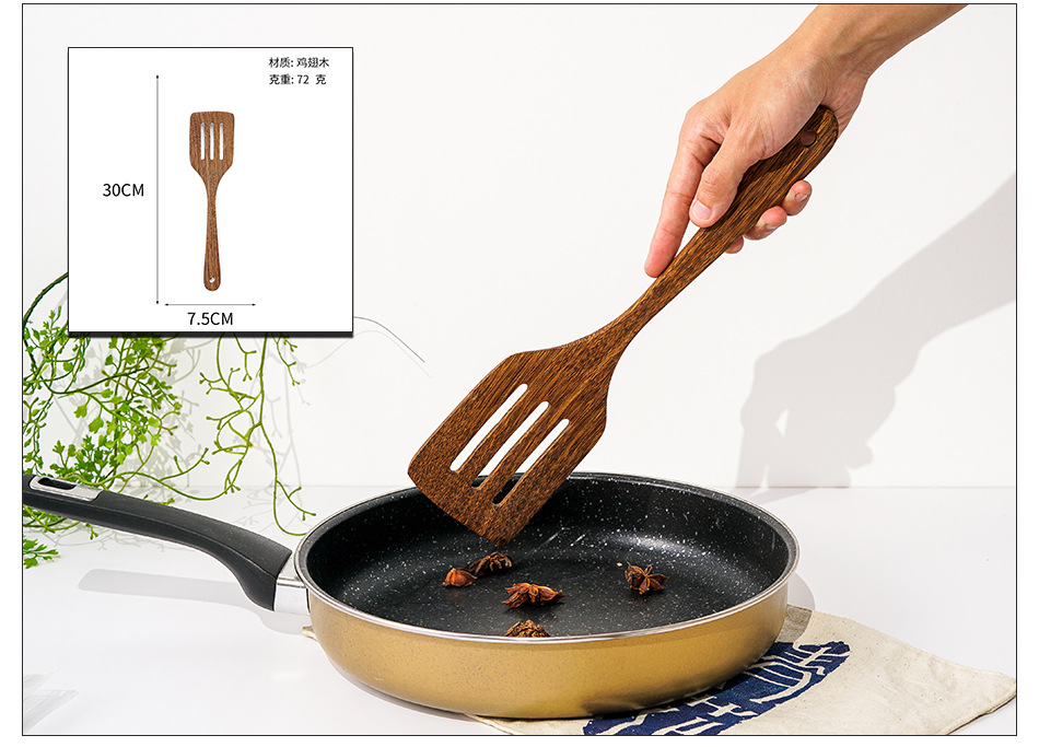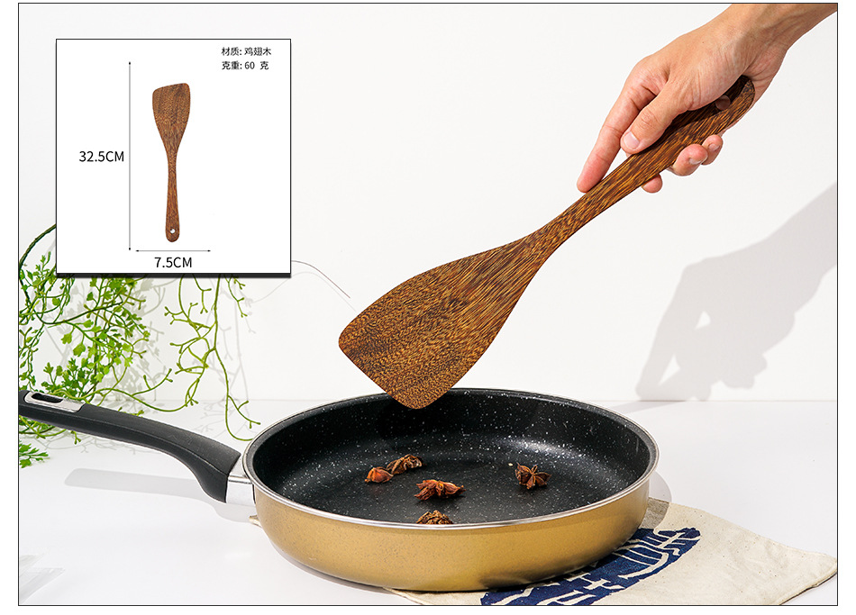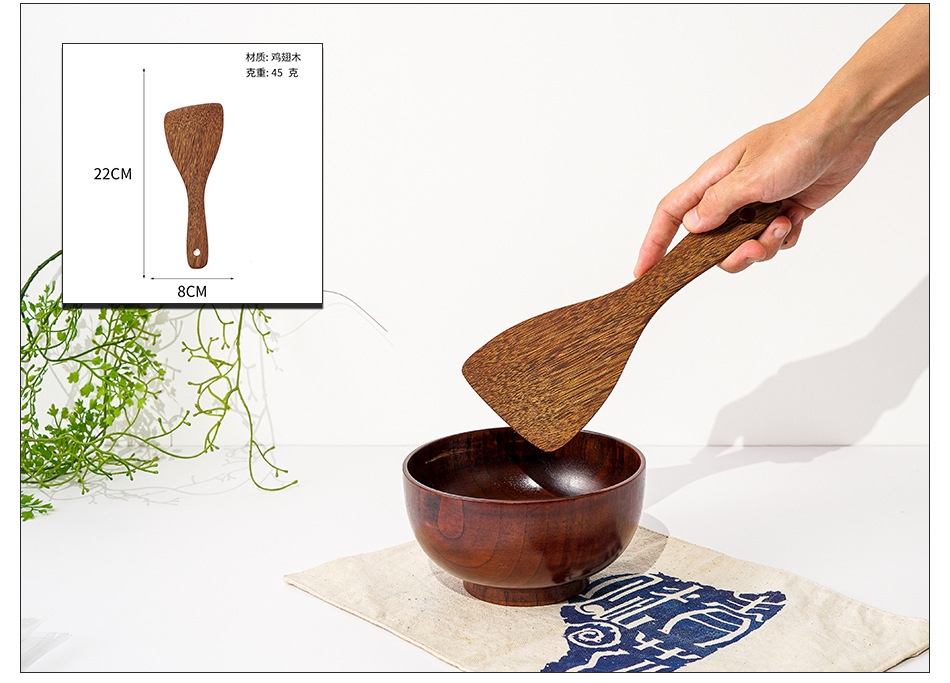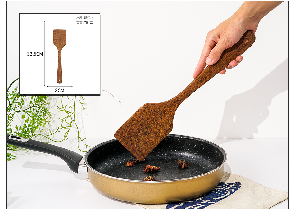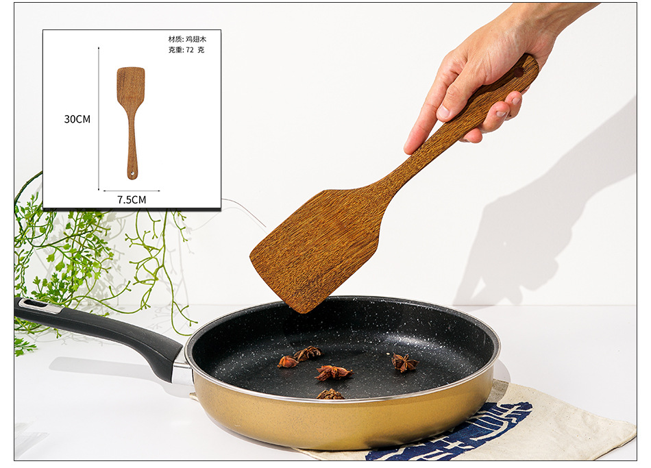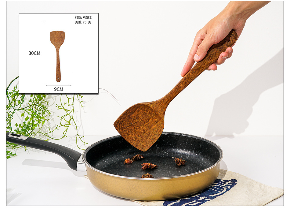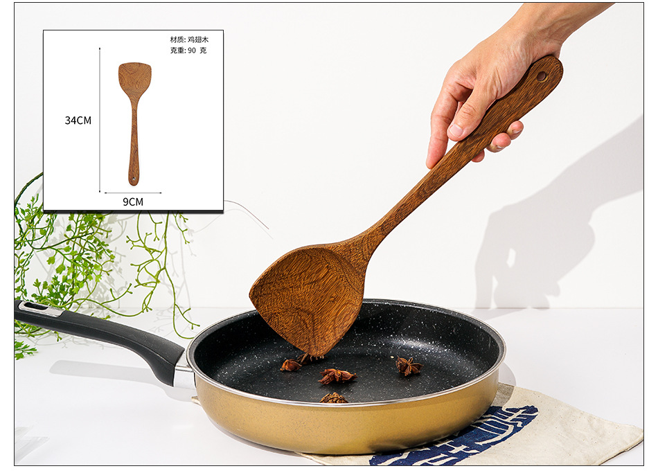 옻칠하지 않은 닭날개 나무 붙지 않는 팬 긴 손잡이 나무 주방 식기 큰 주걱 나무 삽 볶음 삽 나무 수프 스푼 완성 세트