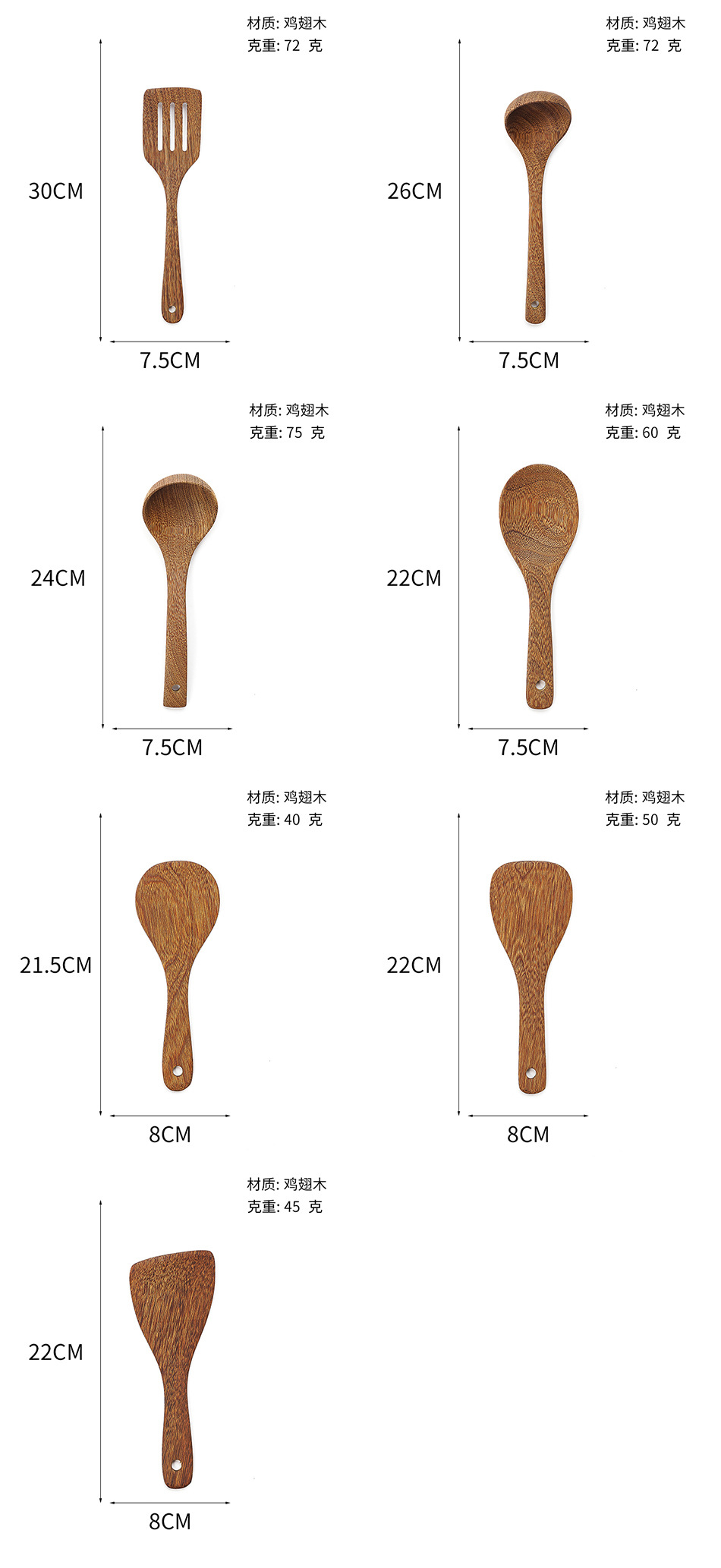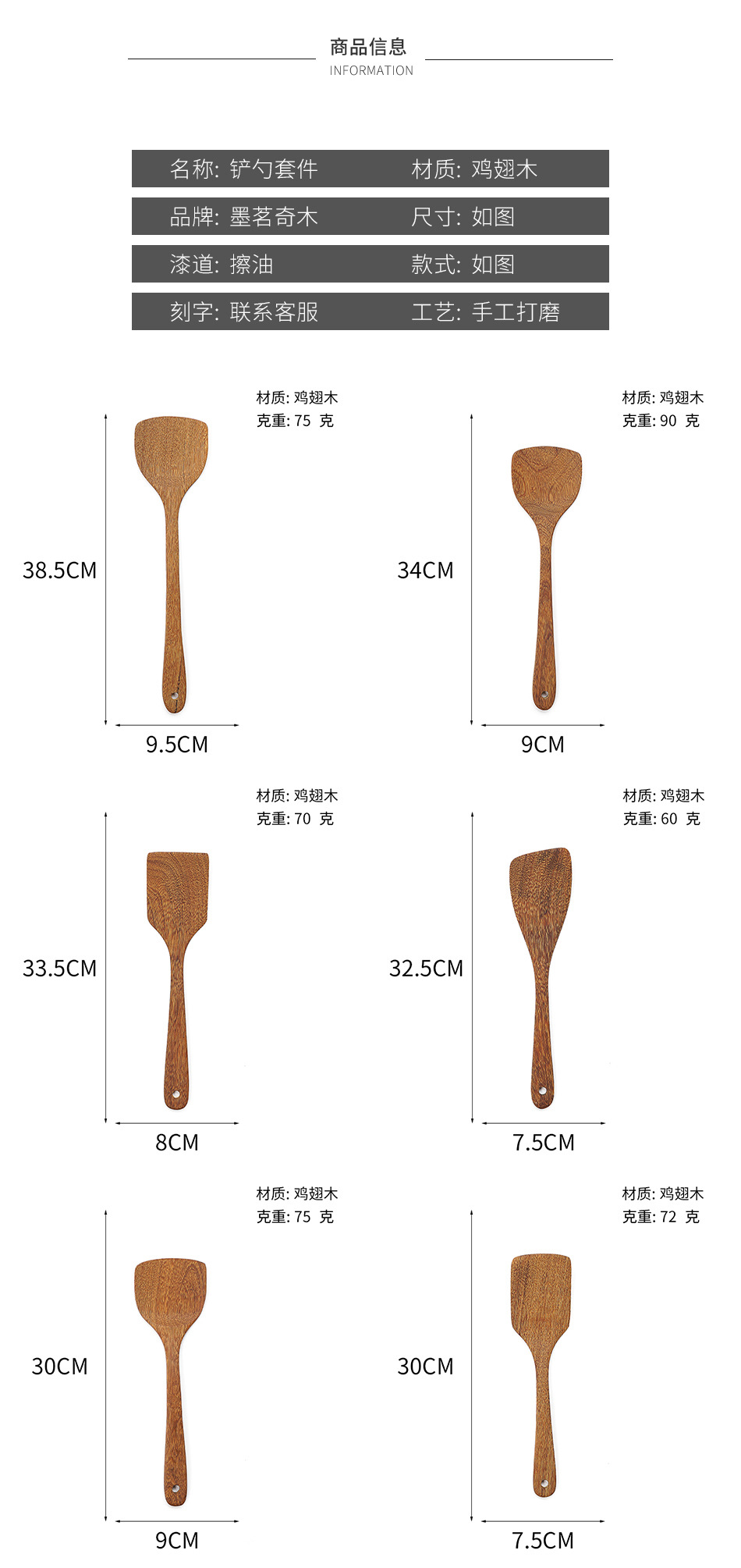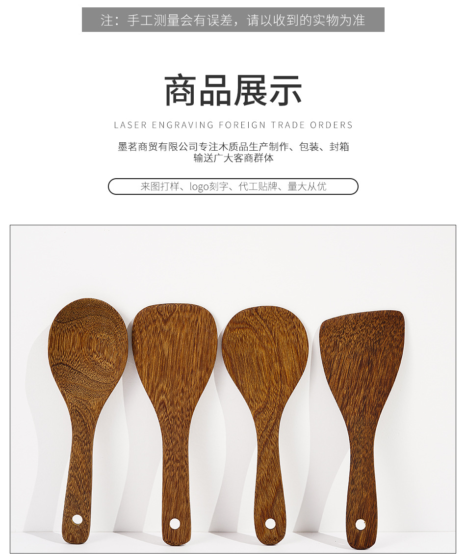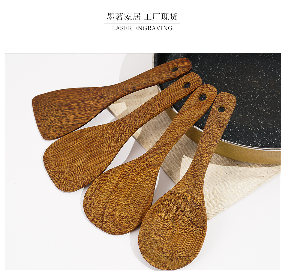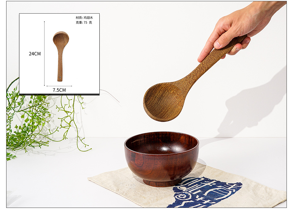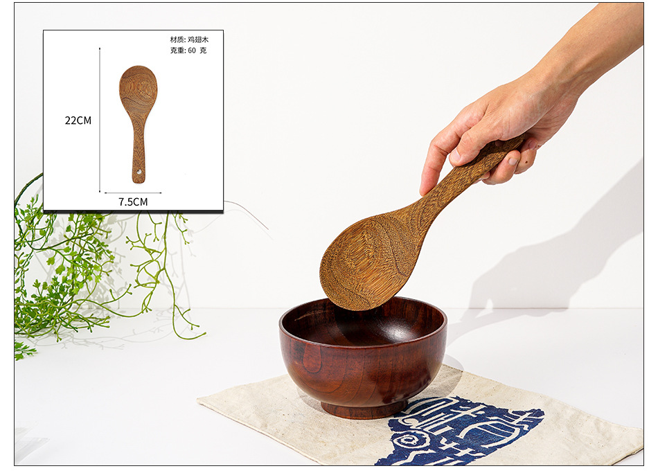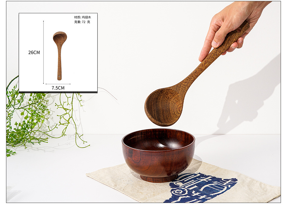 옻칠하지 않은 닭날개 나무 붙지 않는 팬 긴 손잡이 나무 주방 식기 큰 주걱 나무 삽 볶음 삽 나무 수프 스푼 완성 세트