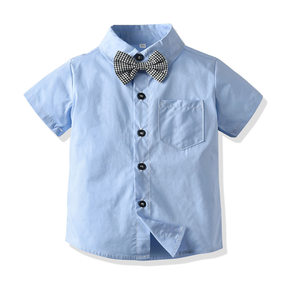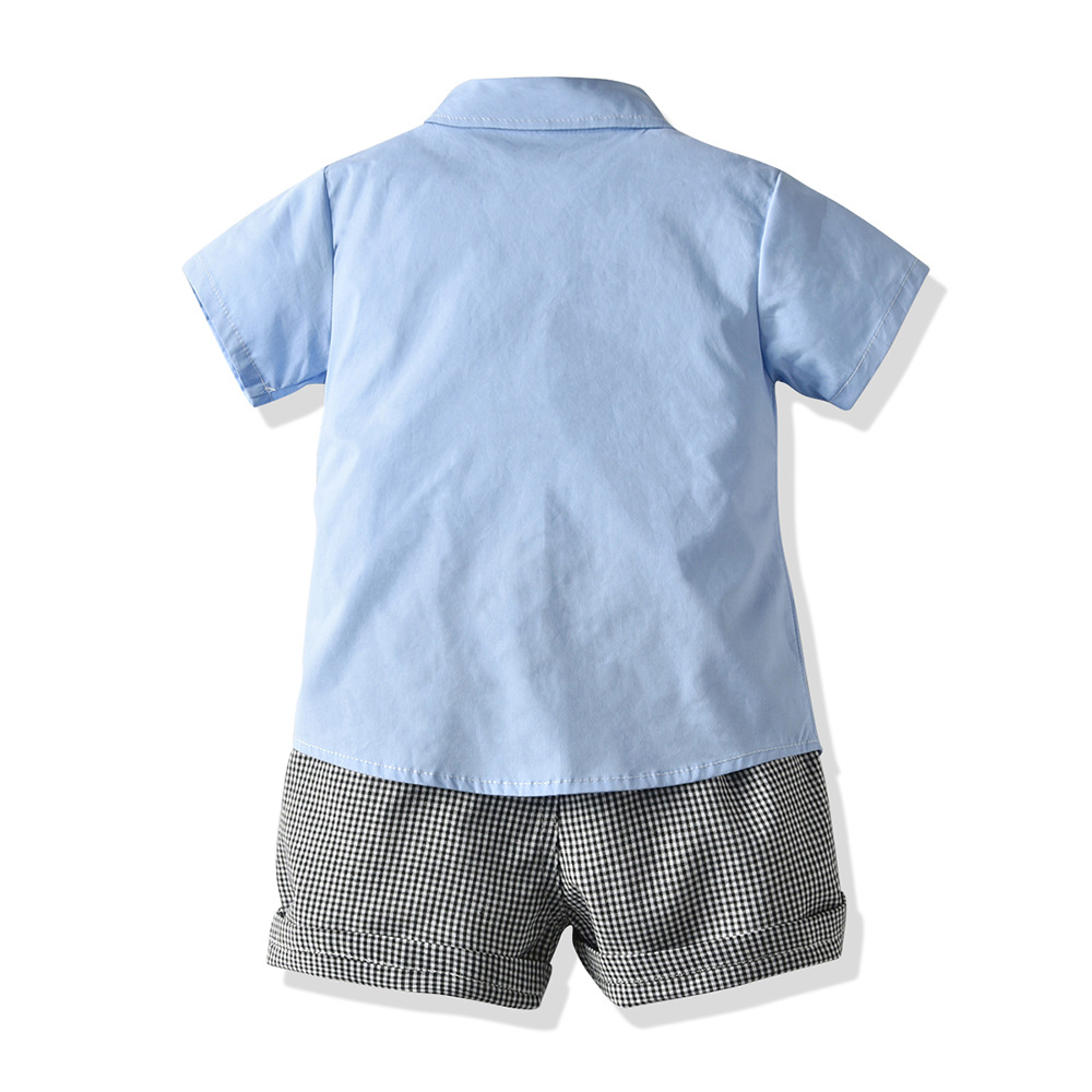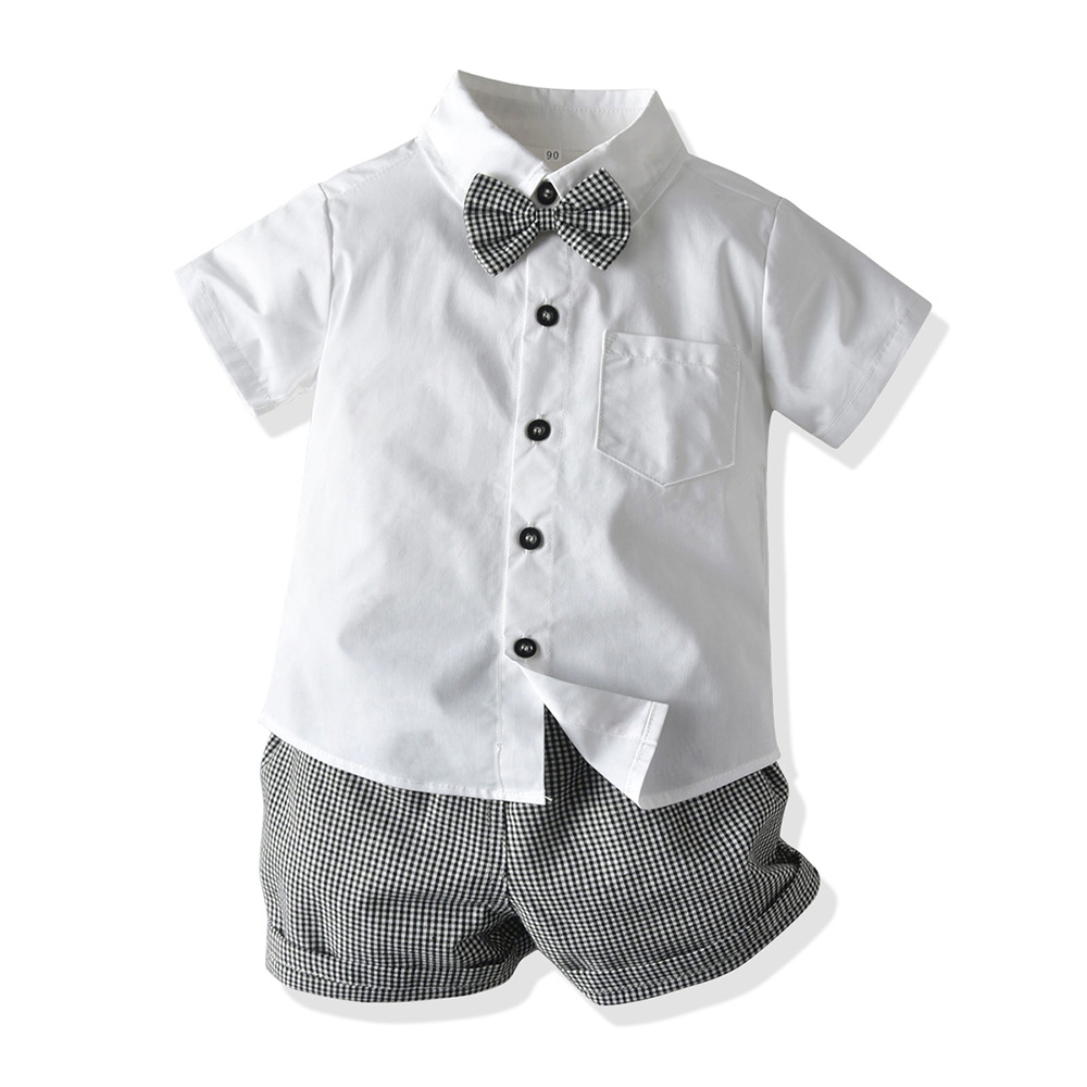 남자 아기의 세트 옷깃 반팔 흰색 셔츠 원피스 Houndstooth 스트랩 반바지 봄과 여름 새로운 한국 스타일 세대 헤어