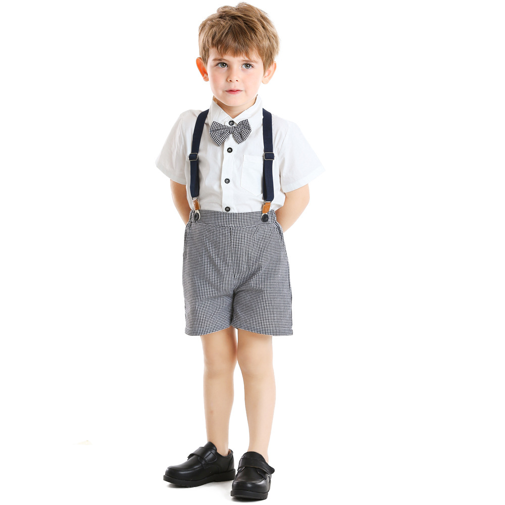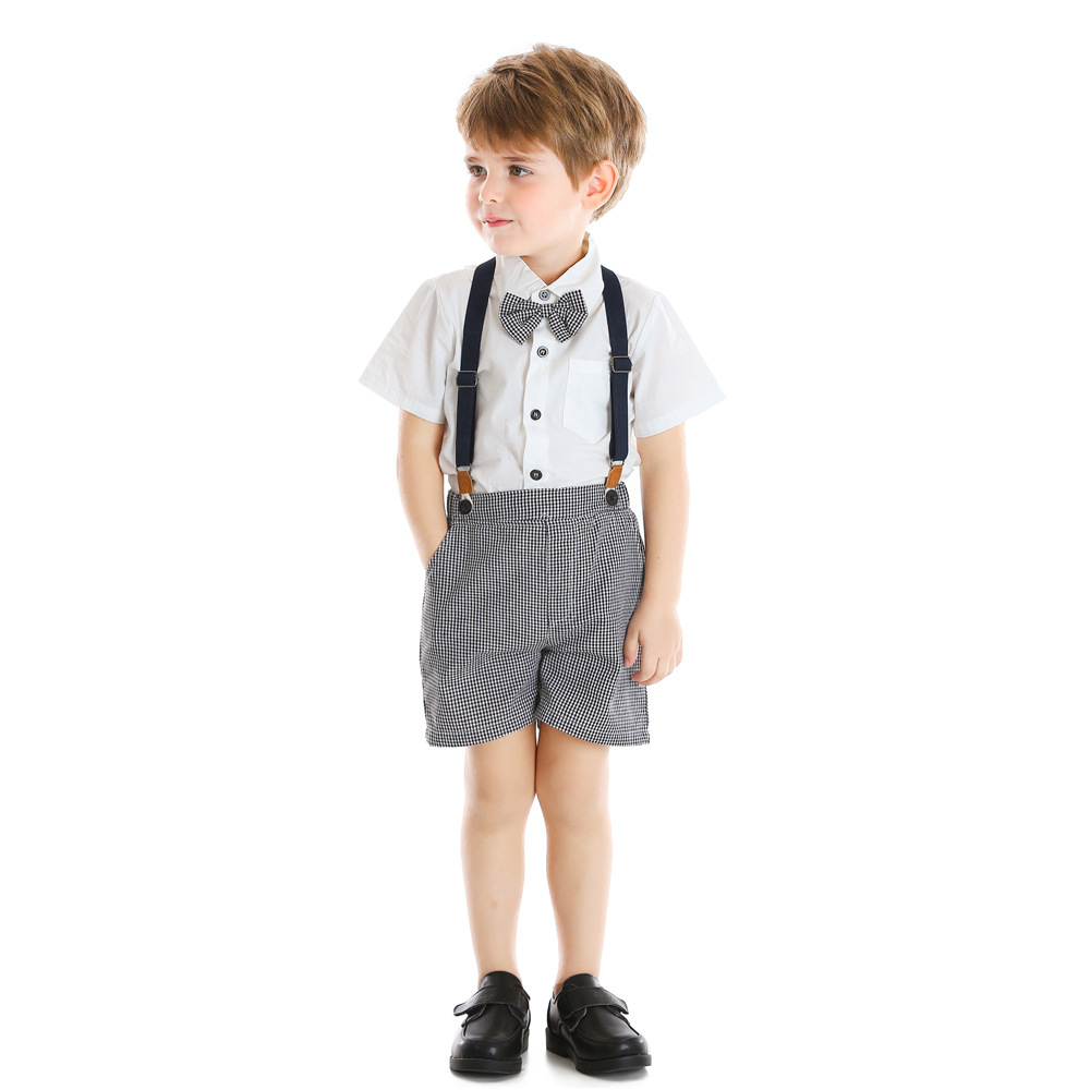 남자 아기의 세트 옷깃 반팔 흰색 셔츠 원피스 Houndstooth 스트랩 반바지 봄과 여름 새로운 한국 스타일 세대 헤어스토어 가기