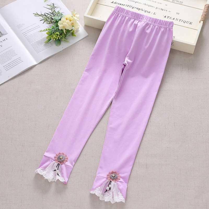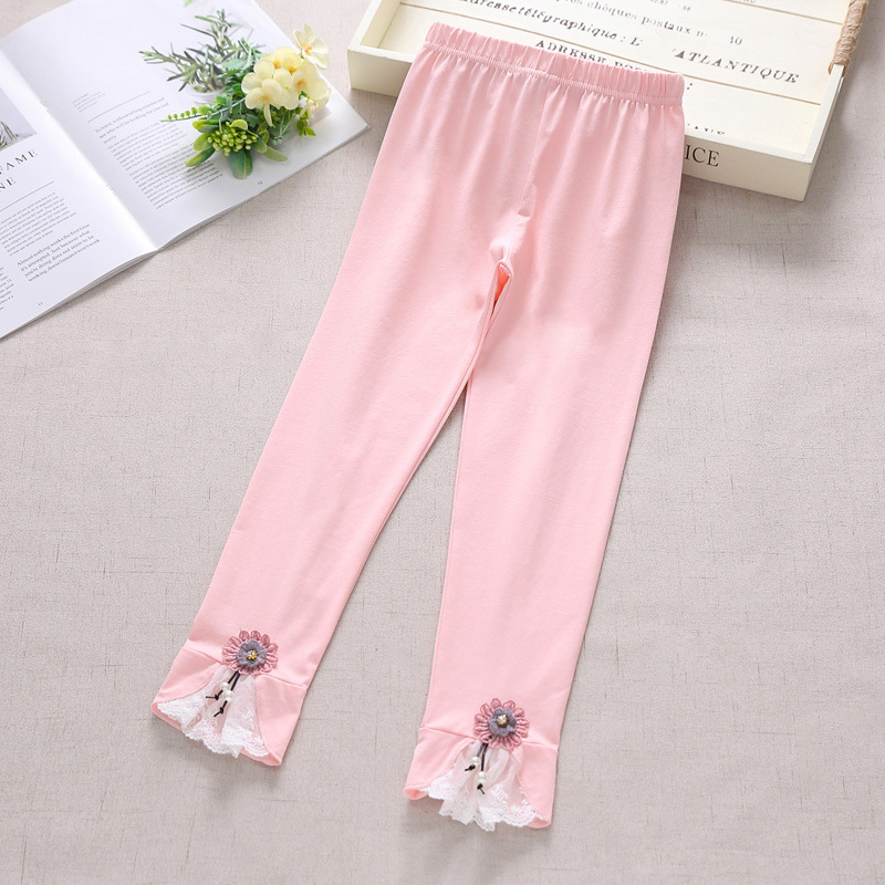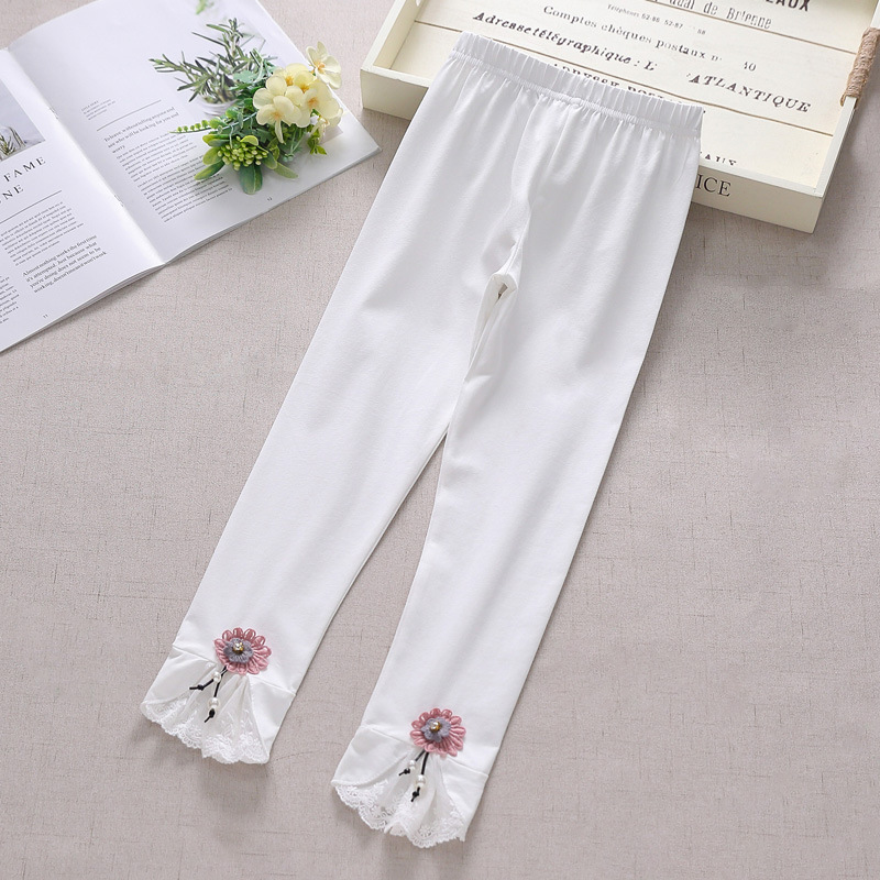 여아용 아동 레깅스, 얇은 여름용 아이스 코튼 소재, 아동용 흰색 순면 니트 모기 방지 긴 바지, 트렌디한 디자인스토어 가기