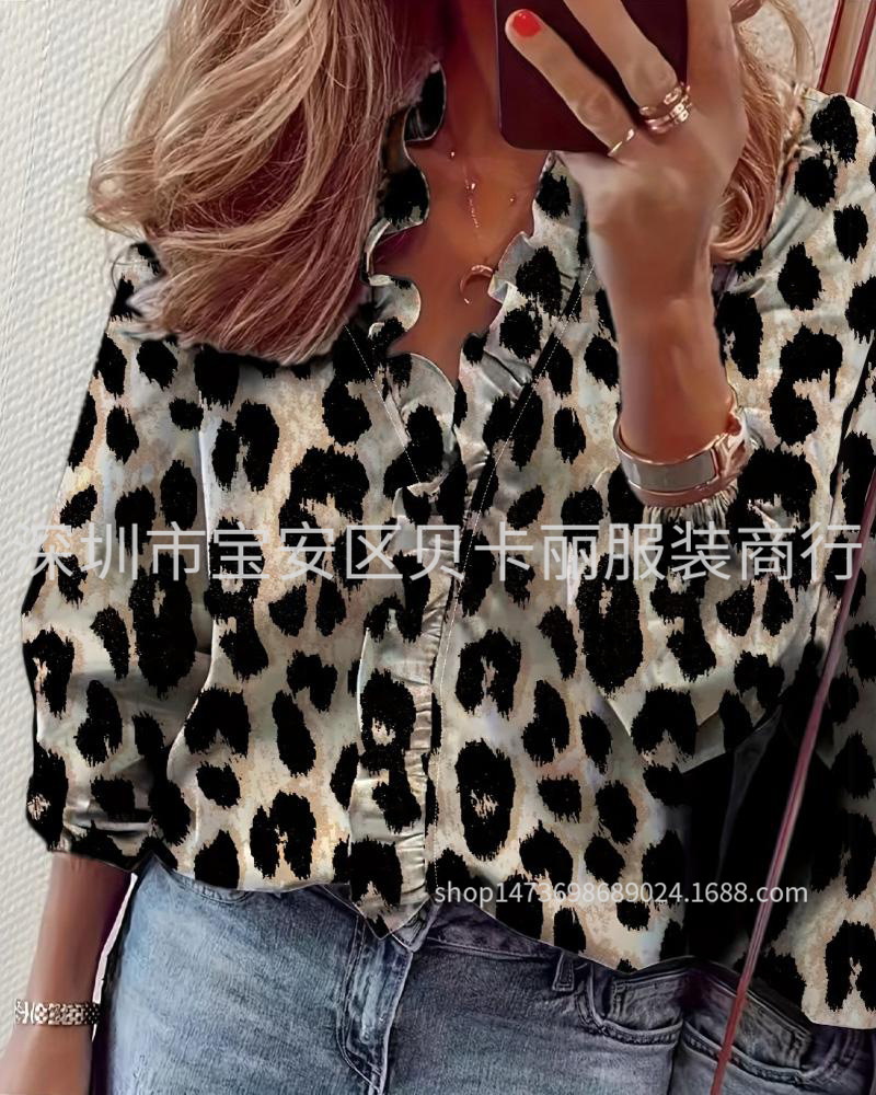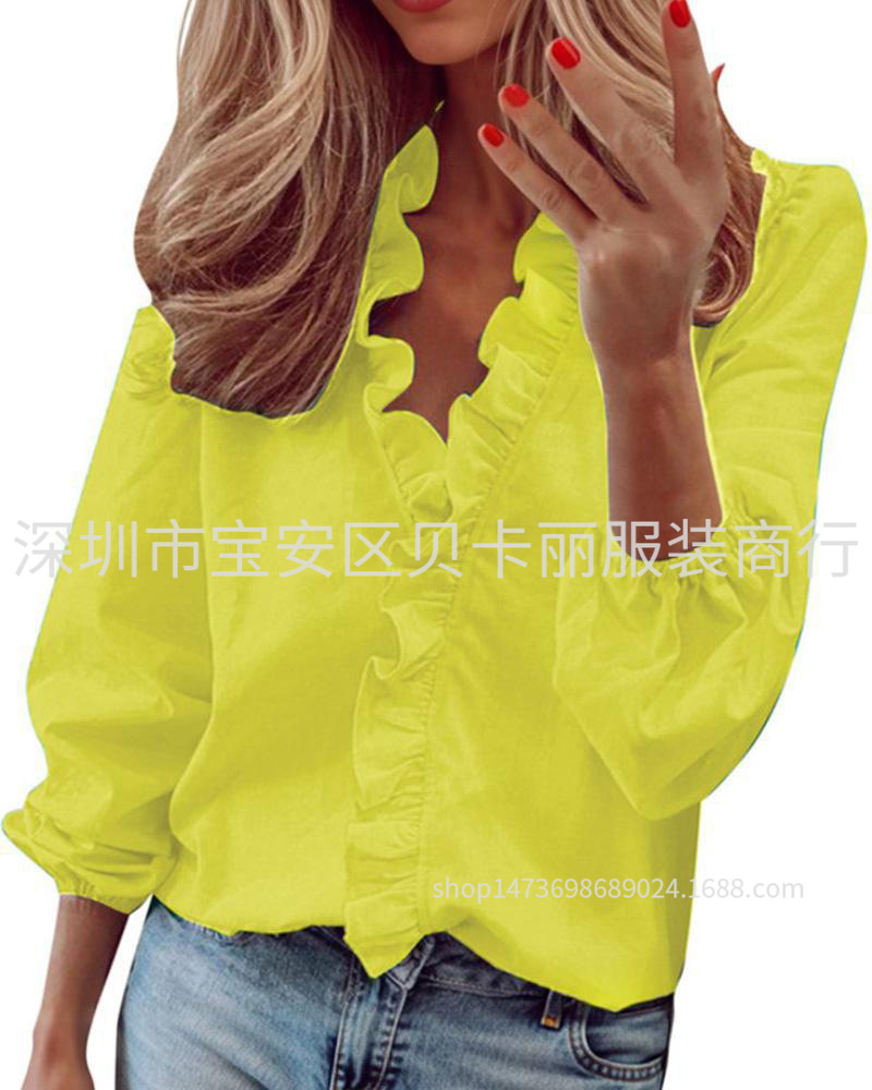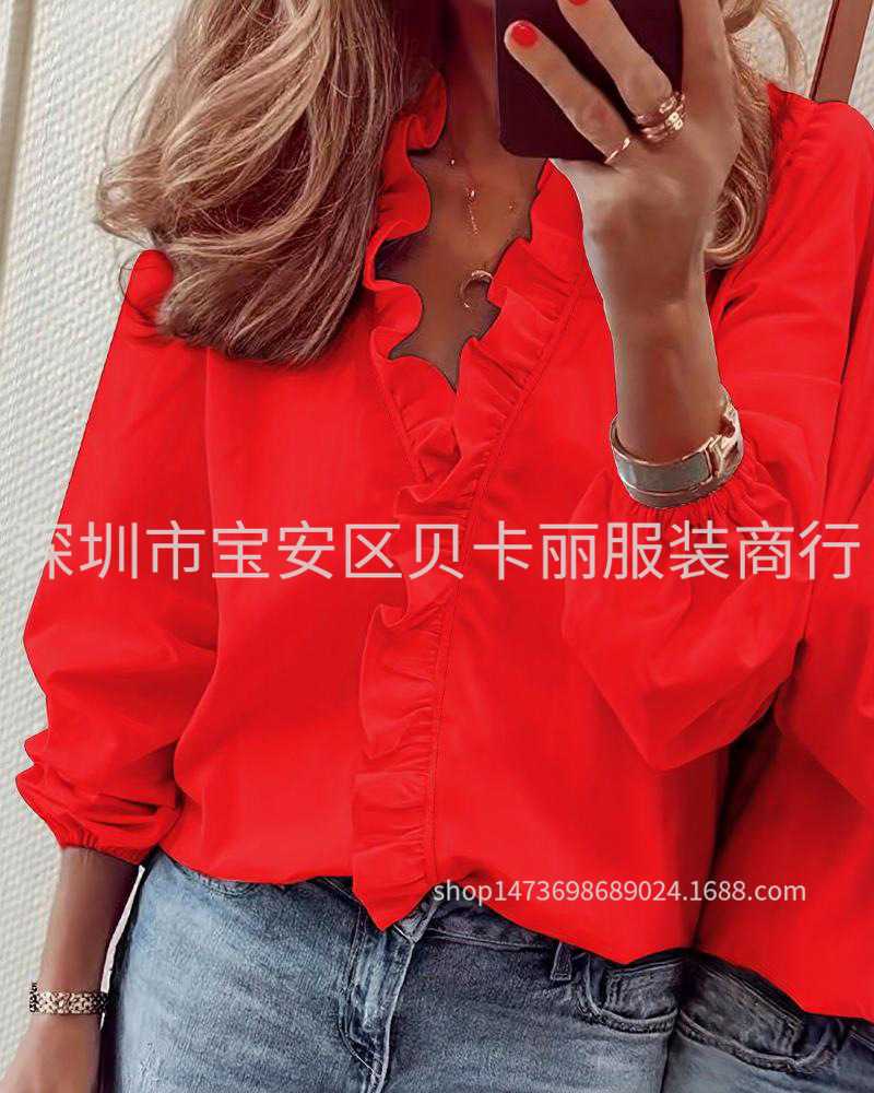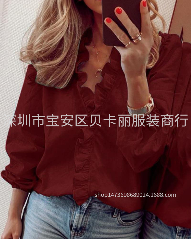 2023 아마존 소원 독립 역 이베이 봄과 여름 유럽과 미국 새로운 긴팔 프릴 셔츠 여성 셔츠스토어 가기