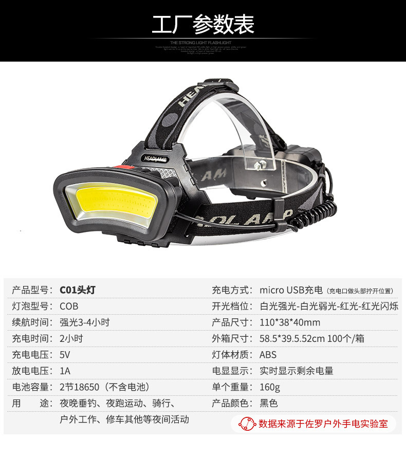 크로스 보더 휴대용 전조등 자동 유도 유지 보수 램프 생활 방수 5 단 조절 야외 스포츠 승마 스포츠 램프