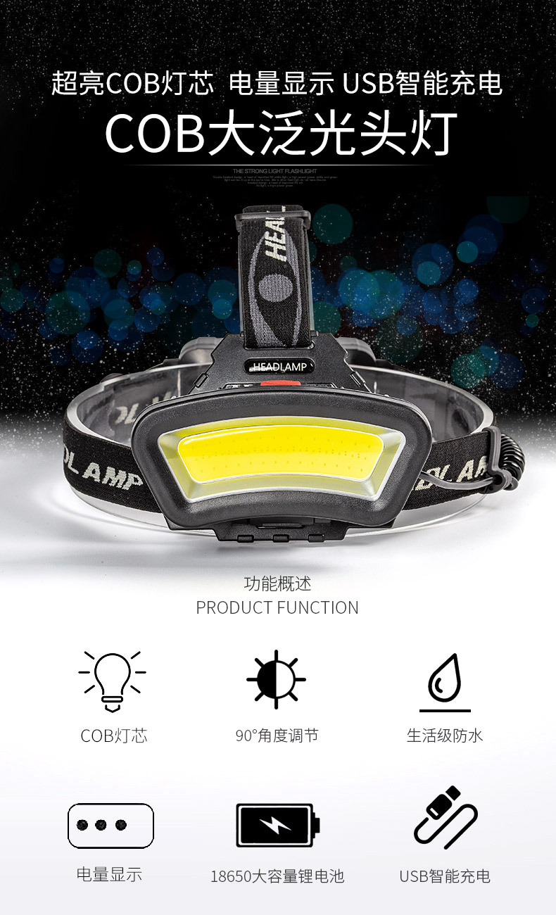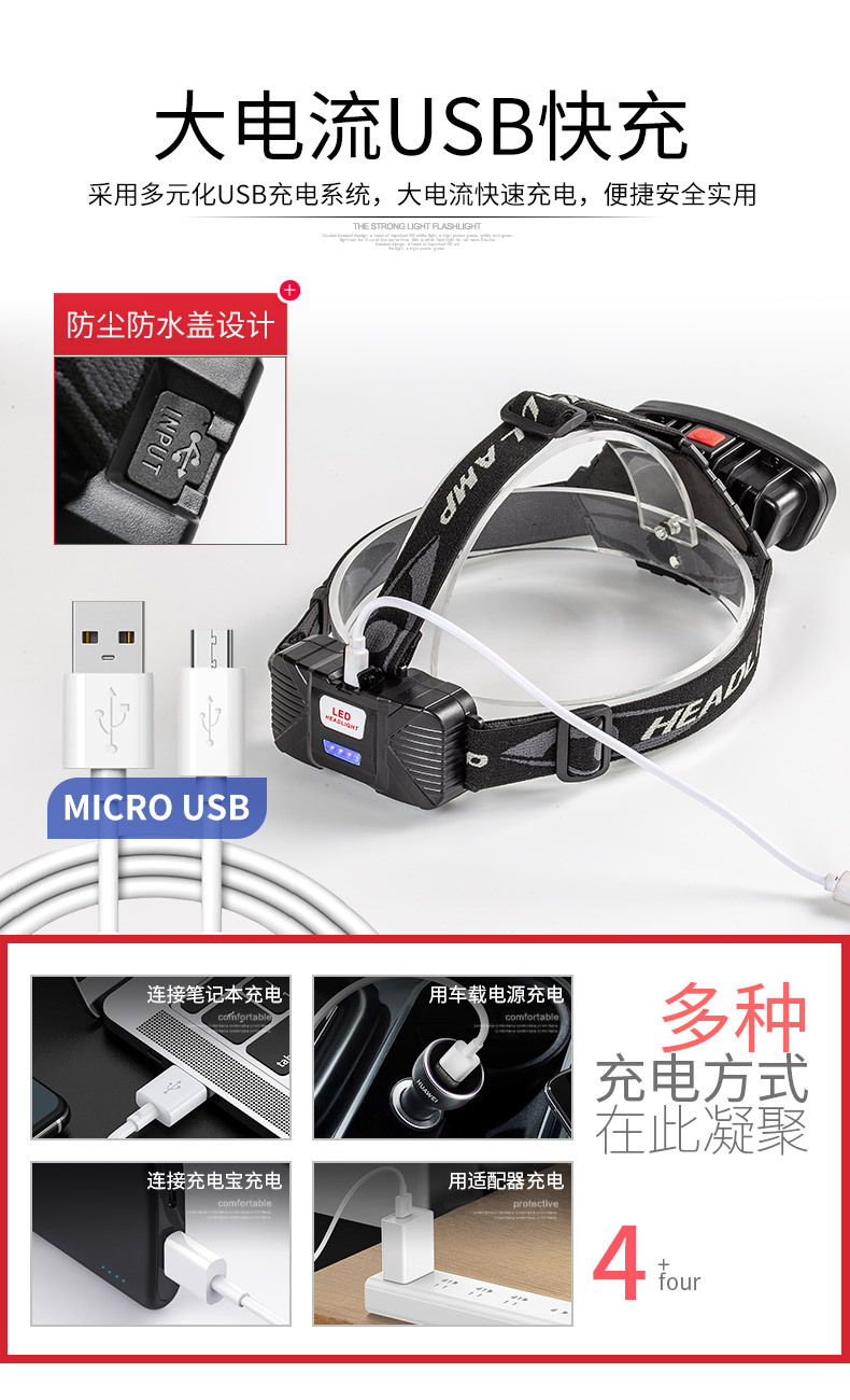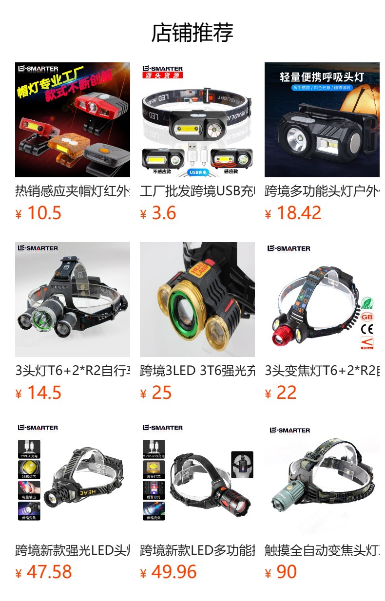 크로스 보더 휴대용 전조등 자동 유도 유지 보수 램프 생활 방수 5 단 조절 야외 스포츠 승마 스포츠 램프스토어 가기