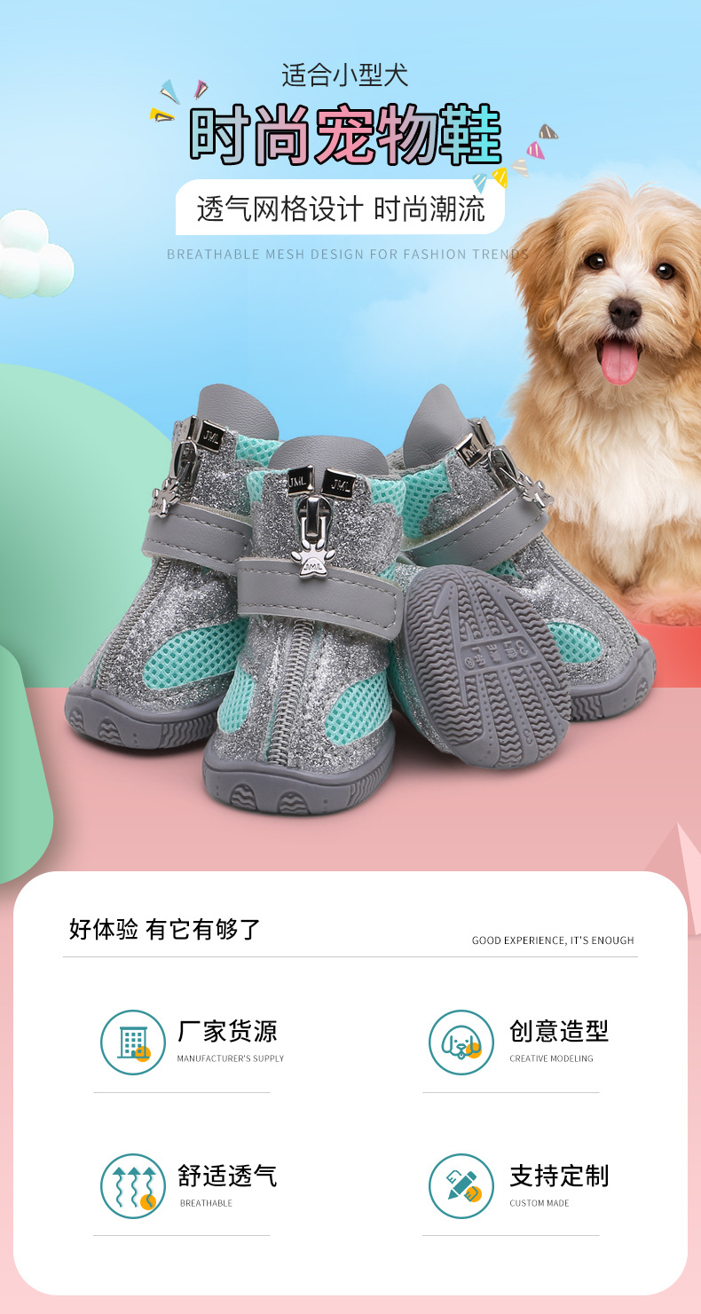 Jiameile의 새로운 개 신발, 반짝이는 스포츠 애완 동물 신발, 통기성 사계절 신발, 하이 탑 중소형 개 신발, 대외 무역스토어 가기