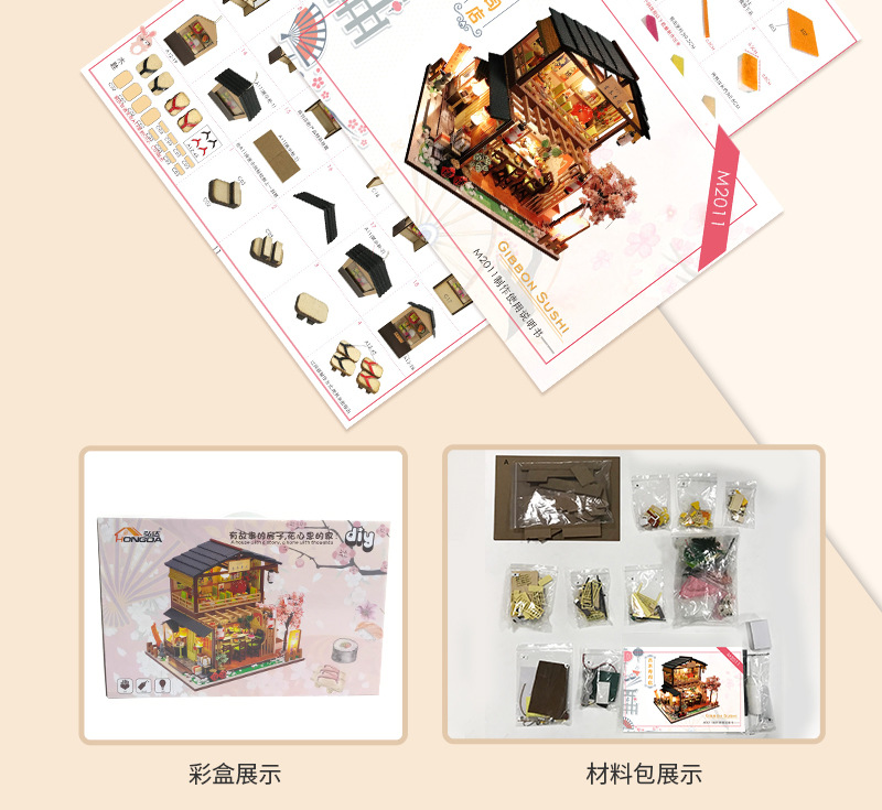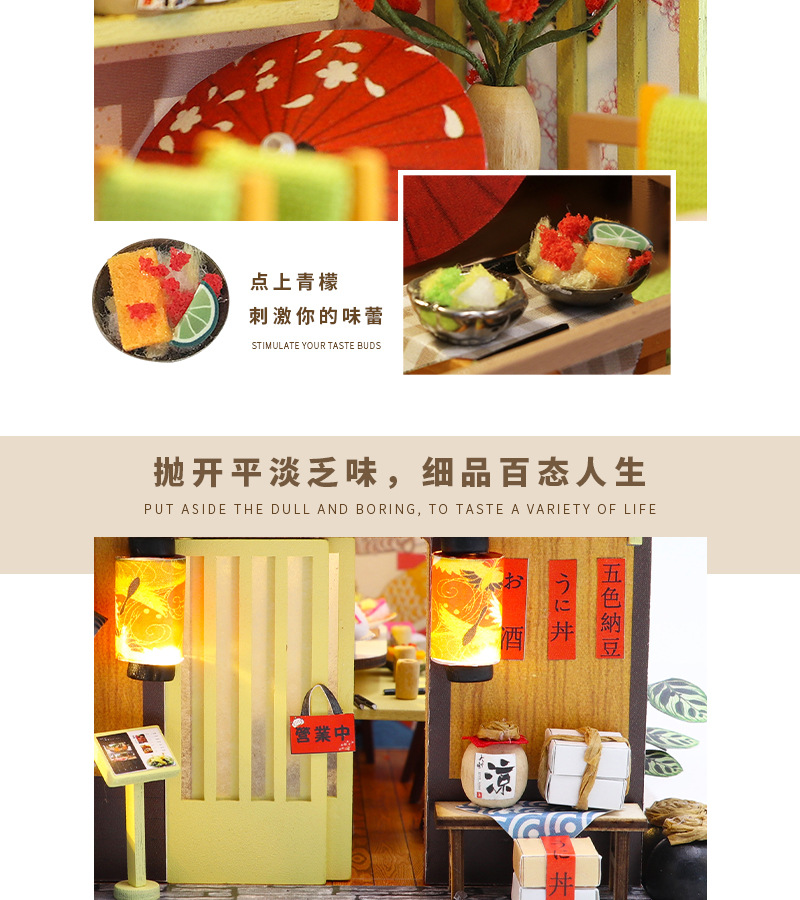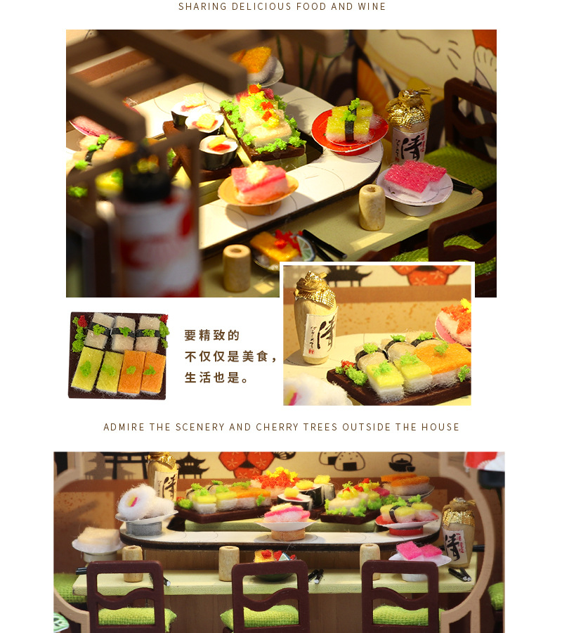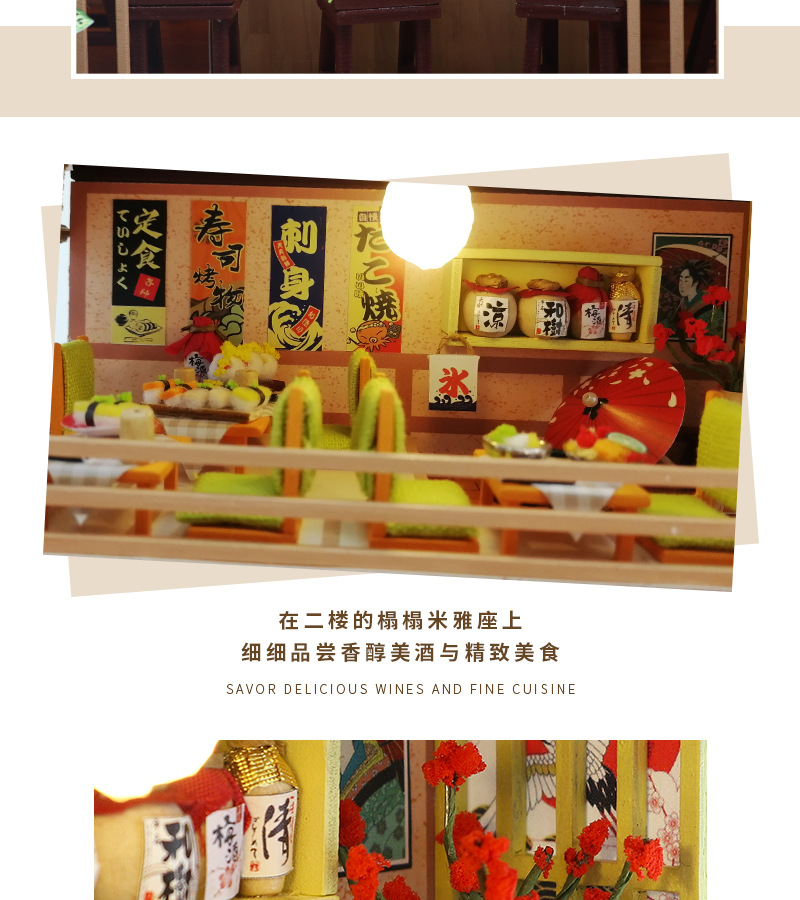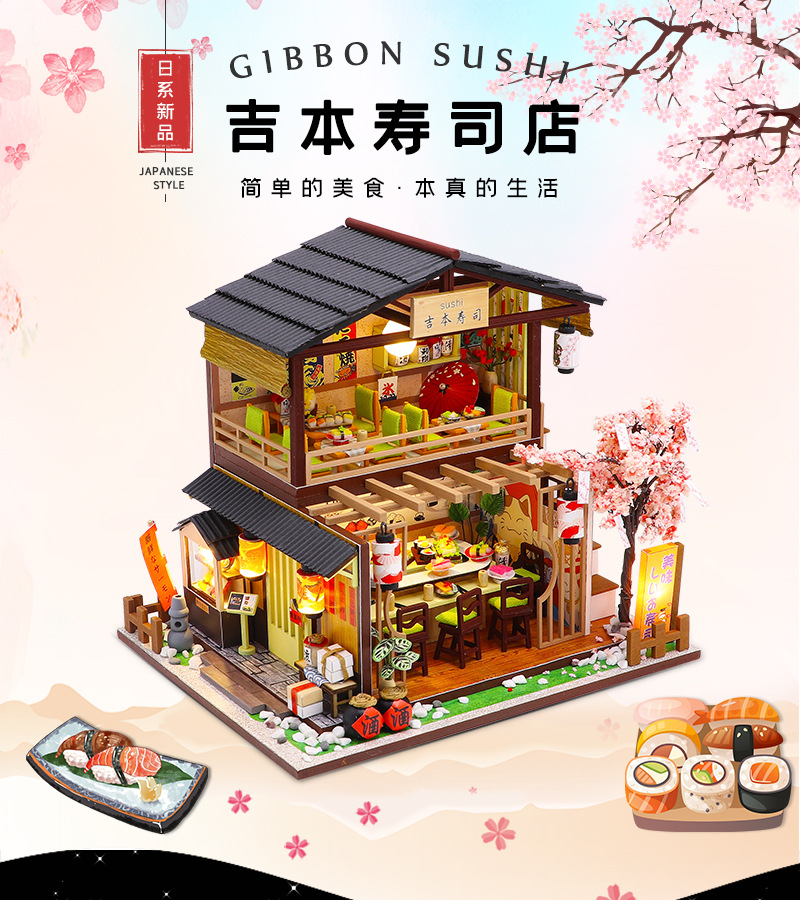 홍다 스시점 DIY 소형 주택 일본식 수제 조립식 목조 주택 모형 장난감 미니어처 건축 장식품