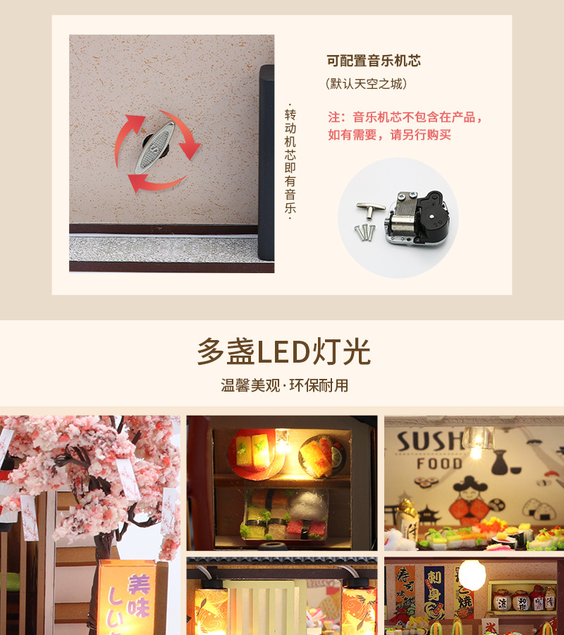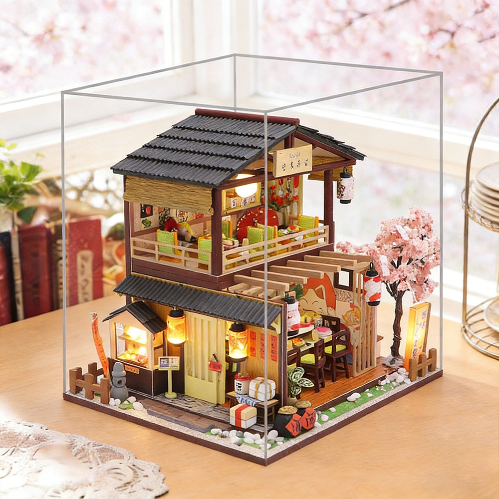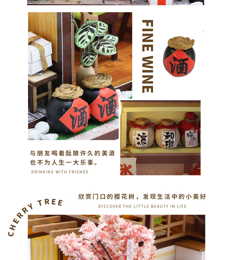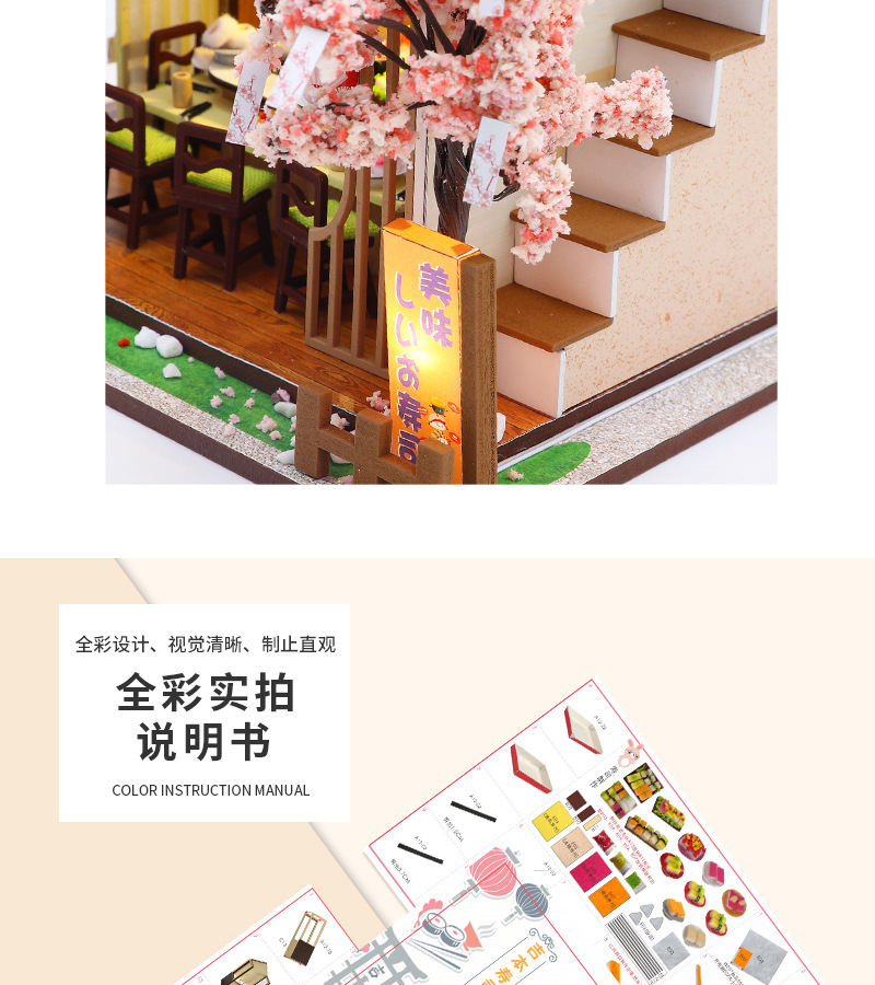 홍다 스시점 DIY 소형 주택 일본식 수제 조립식 목조 주택 모형 장난감 미니어처 건축 장식품