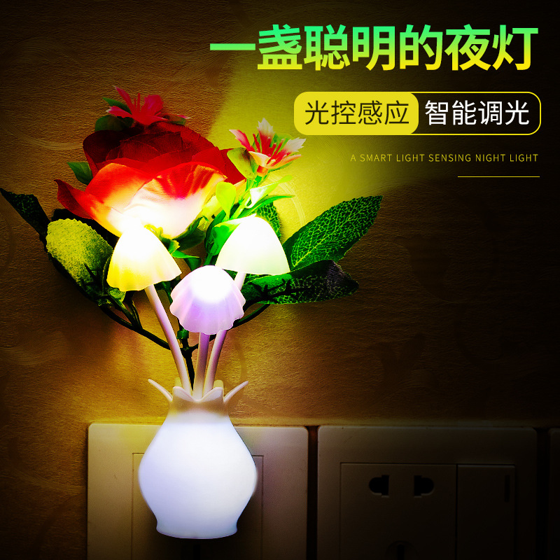 야간 조명 제어 다채로운 그라데이션 led 에너지 절약 빛 유도 버섯 램프 침대 옆 공급 램프 발광 분위기 야간 조명스토어 가기