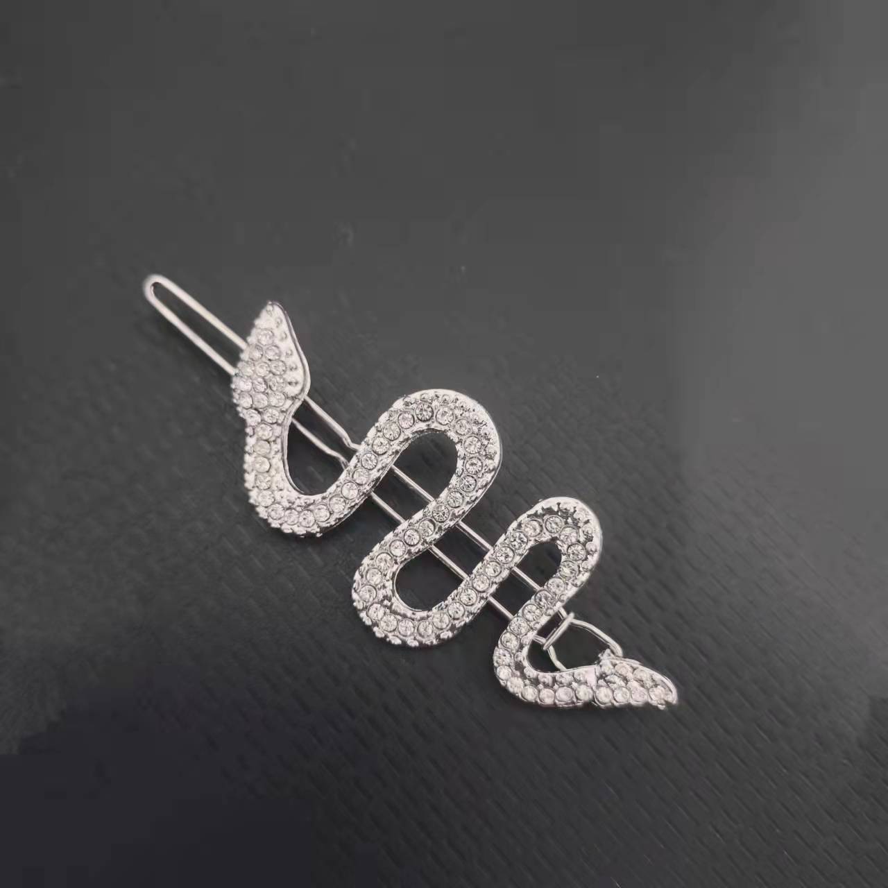 유럽과 미국의 새로운 스타일 개인화 된 뱀 모양의 머리핀 숙녀 차가운 스타일 복고풍 개구리 버클 합금 라인 석 클립 앞머리 클립스토어 가기