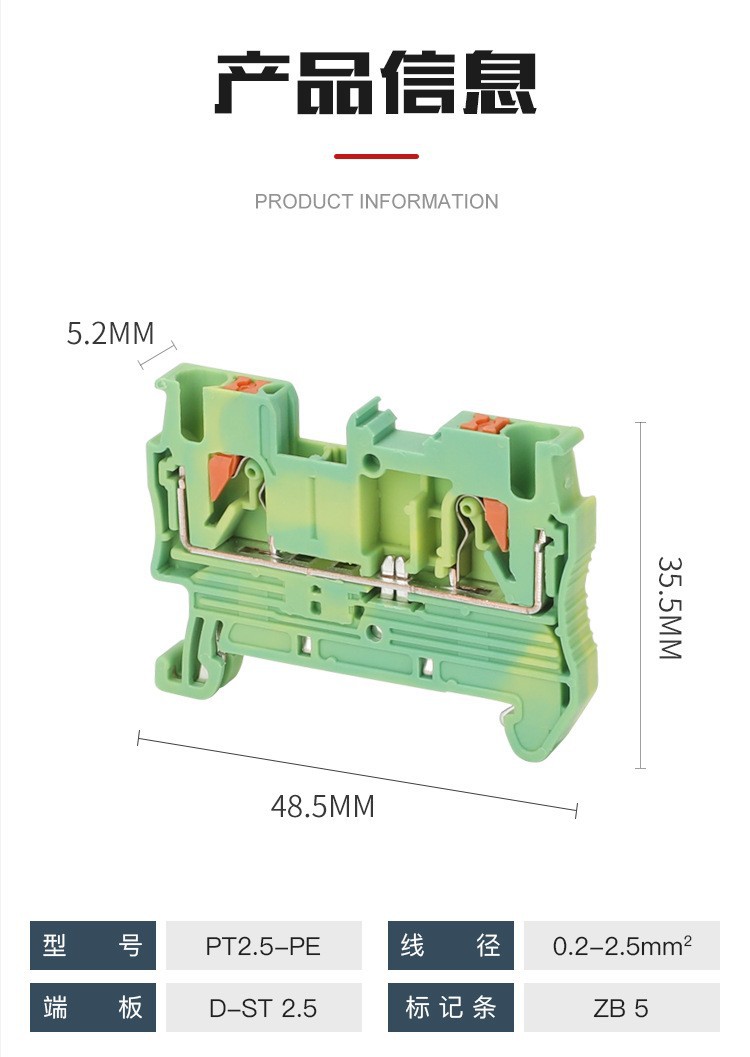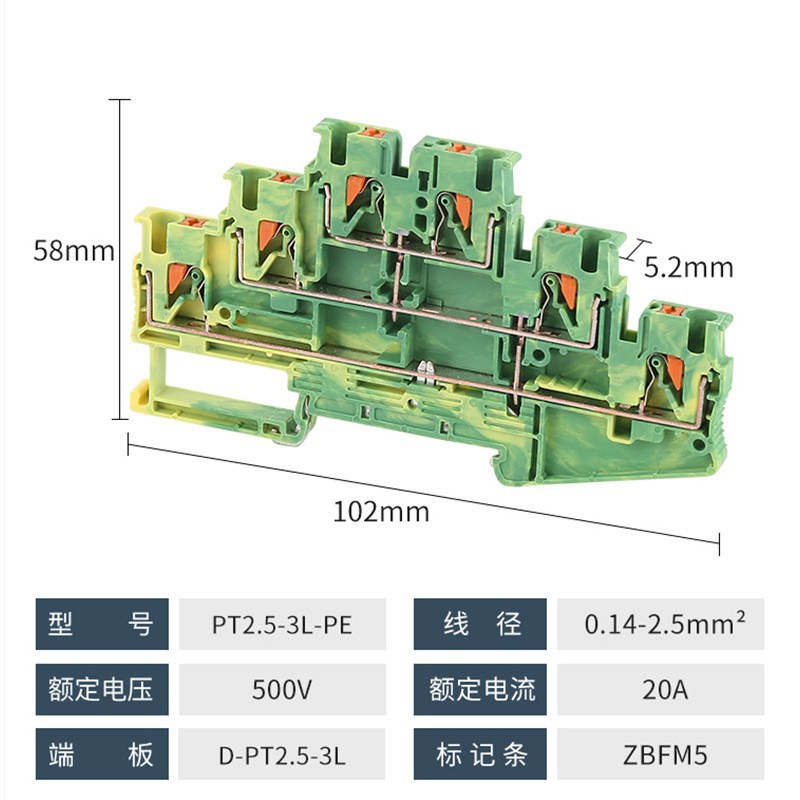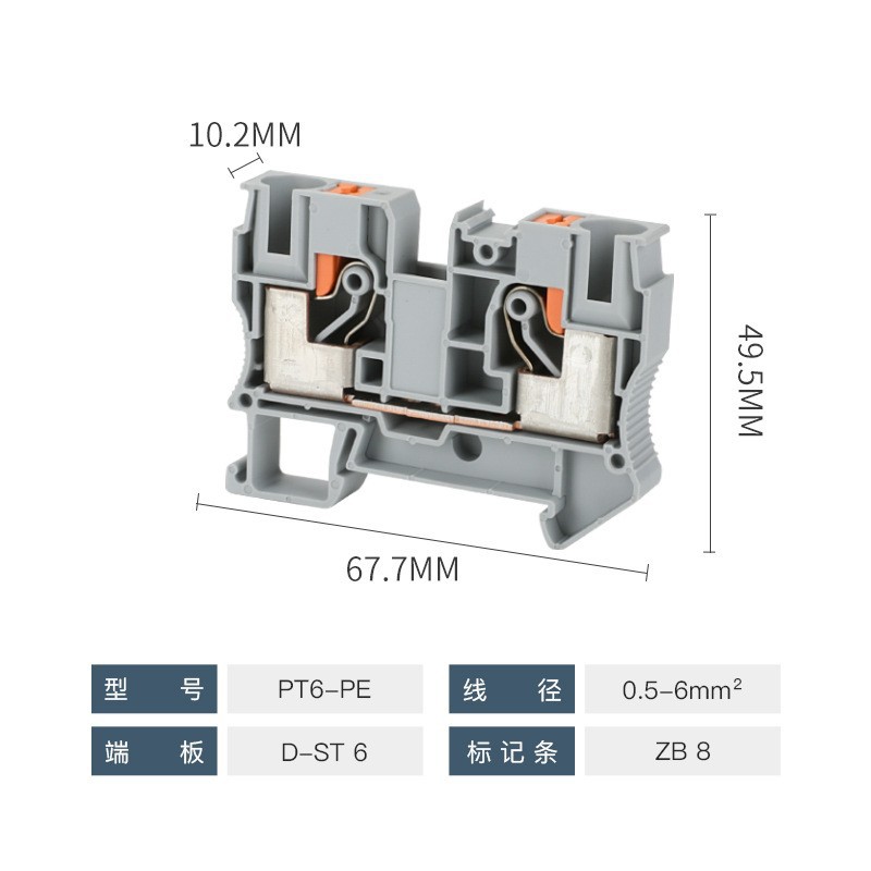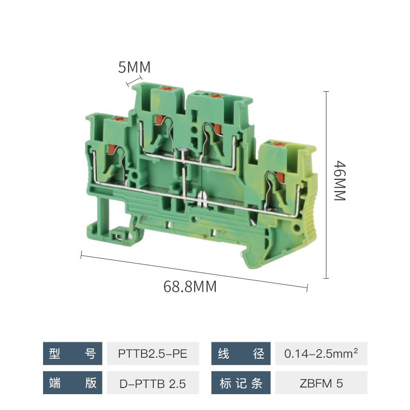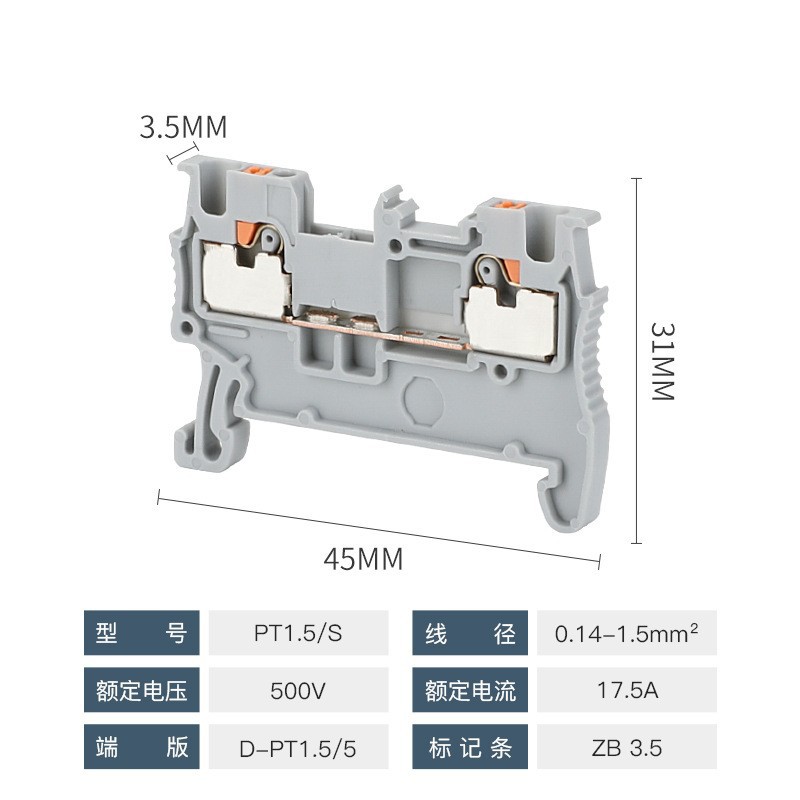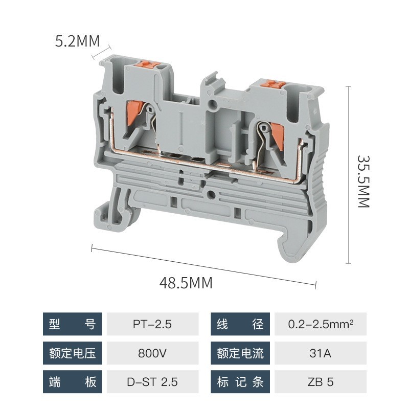 PT2.5 스프링 스크류 프리 터미널 블록 고속 인라인 PT-2.5 레일 터미널 2.5mm 공급