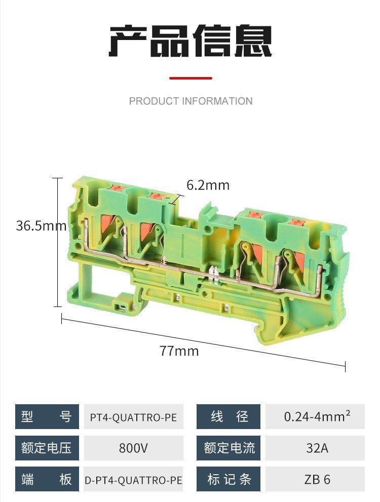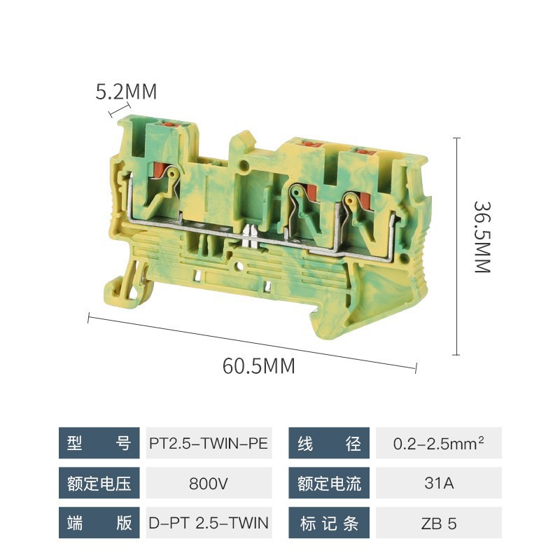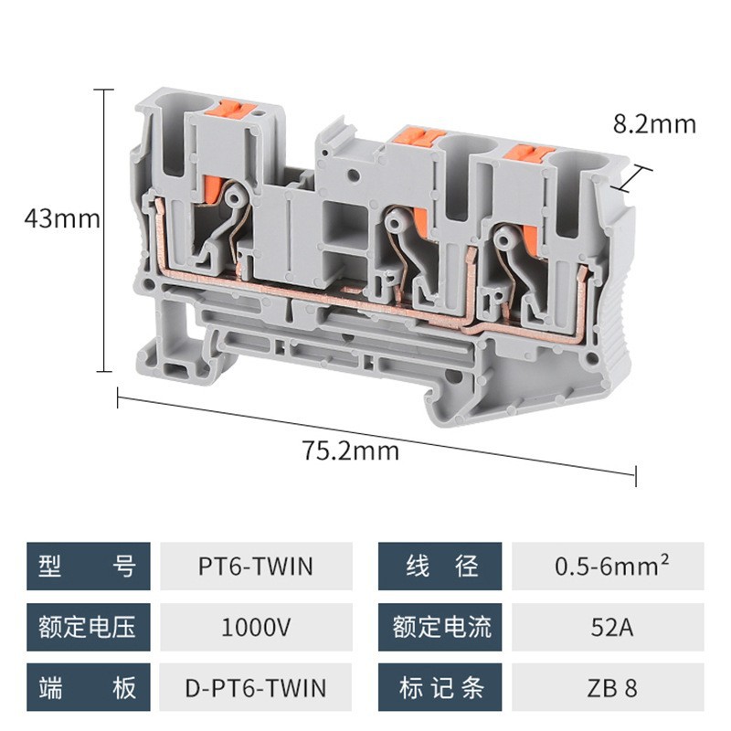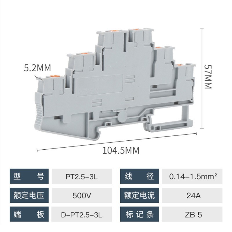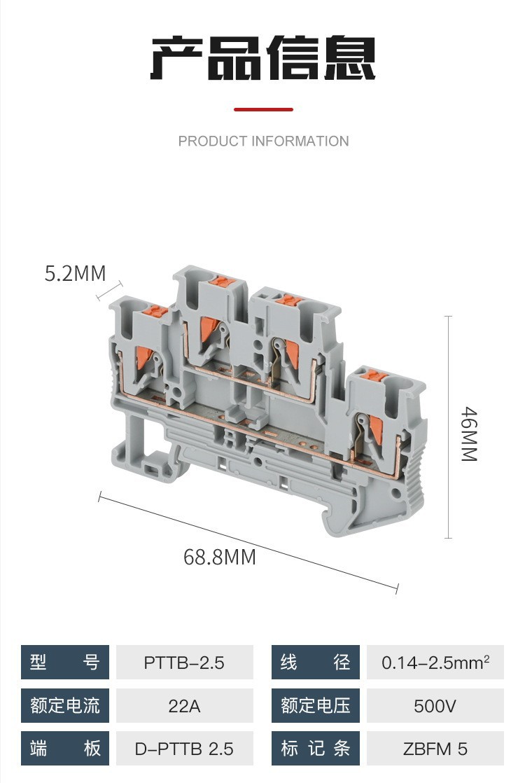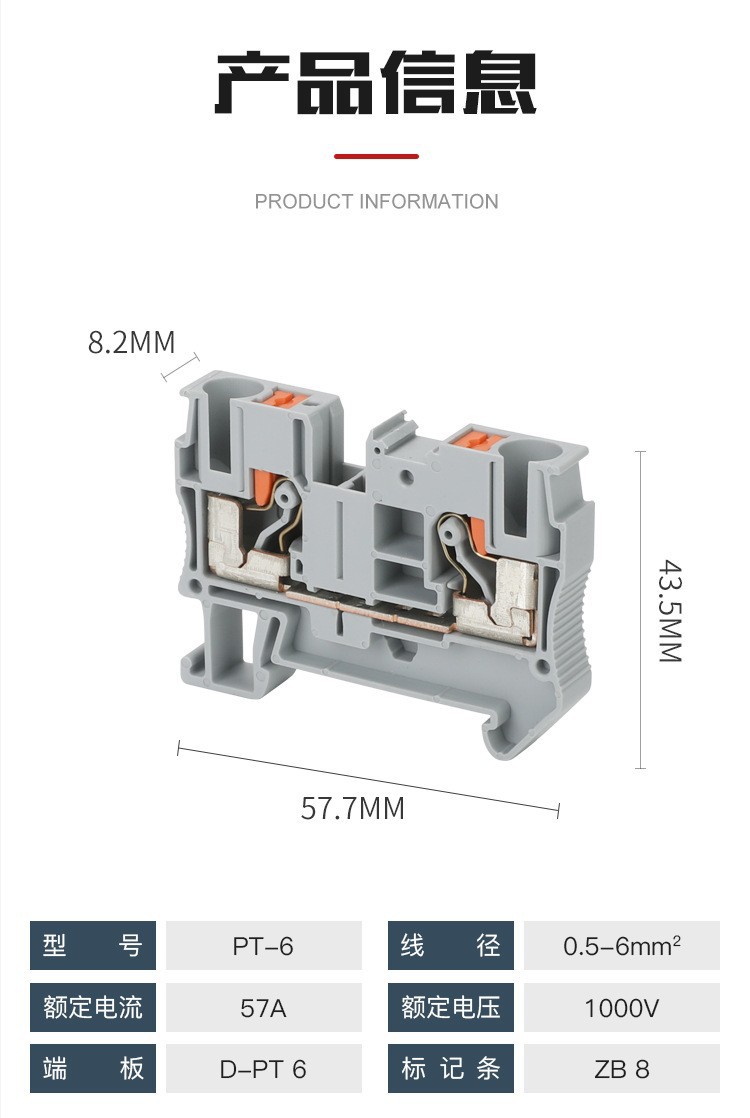 PT2.5 스프링 스크류 프리 터미널 블록 고속 인라인 PT-2.5 레일 터미널 2.5mm 공급