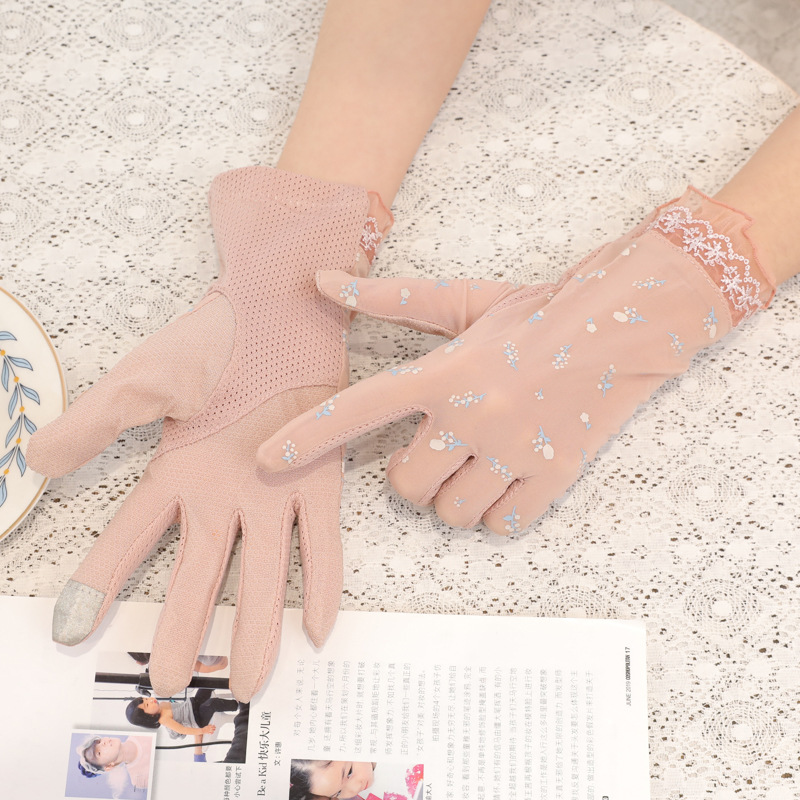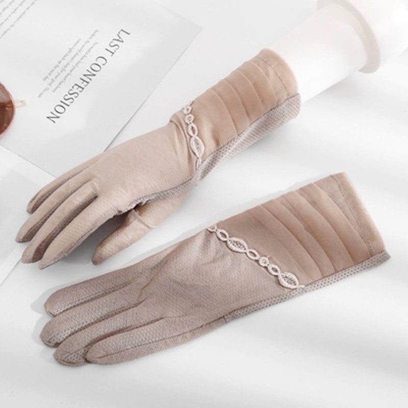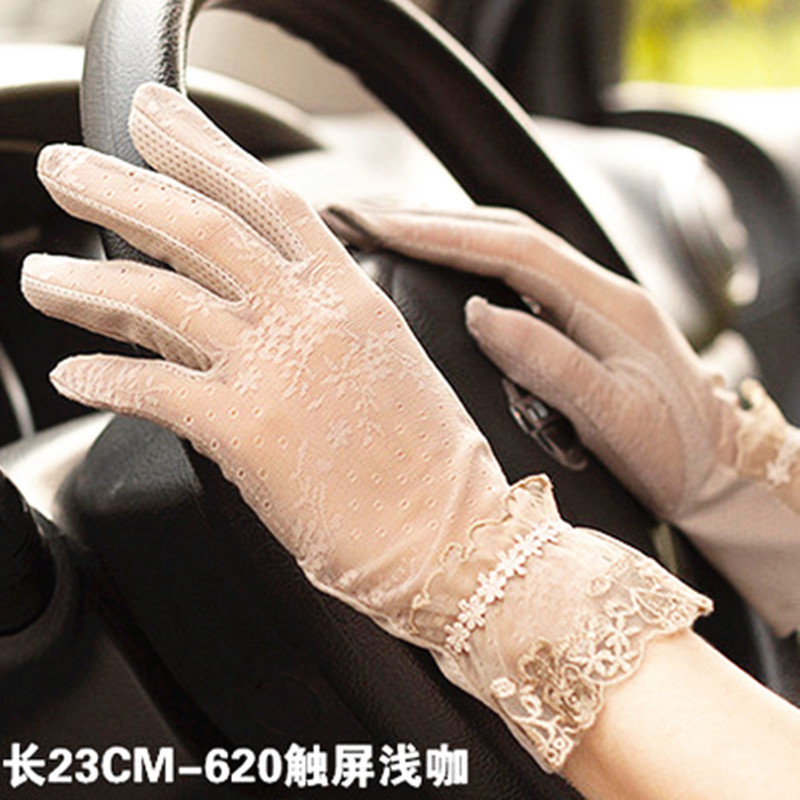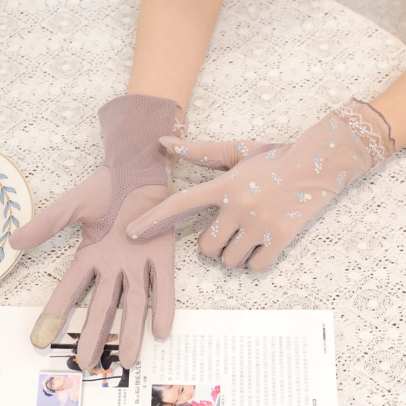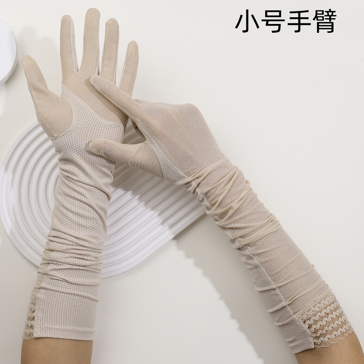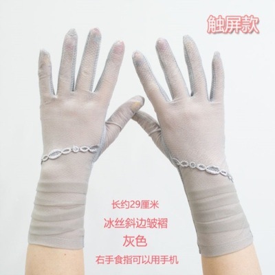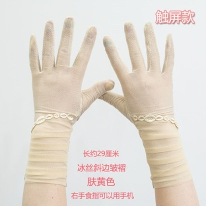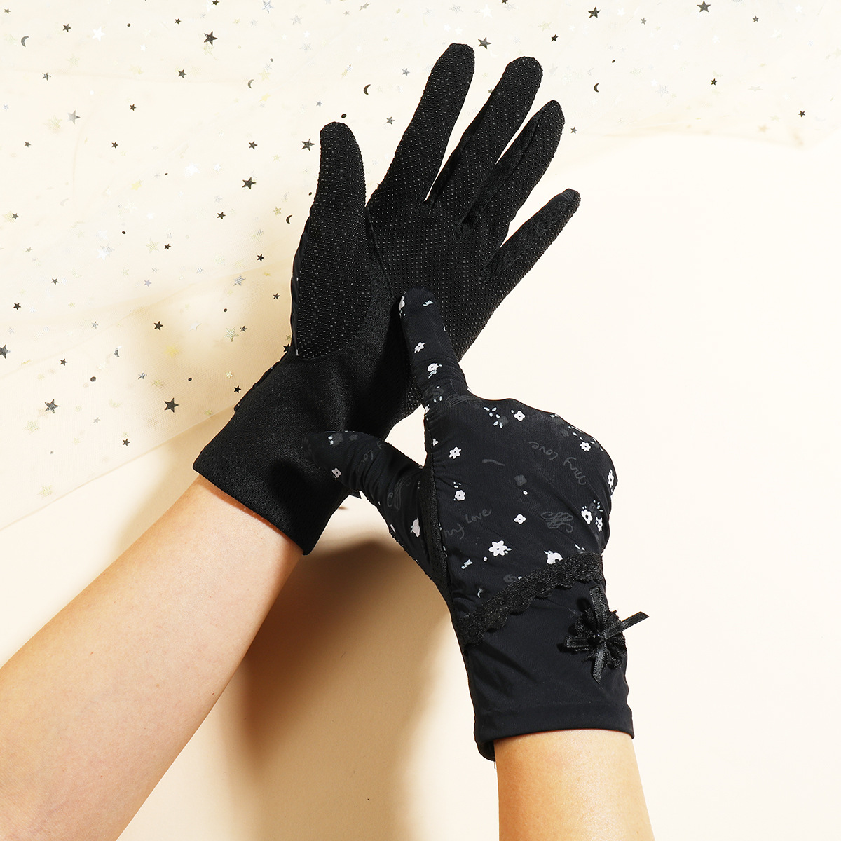 여름 자외선 차단제 얇은 명주 그물 아이스 실크 장갑 여성용 얇은 손 접착 미끄럼 방지 운전 라이딩 전기 자동차 메쉬 레이스
