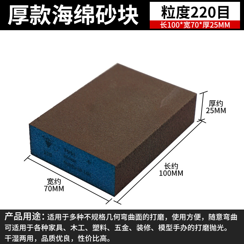 厚-海绵砂块尺寸:宽度70mm*长度100mm*厚度25mm
