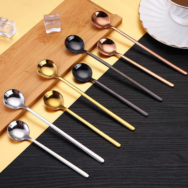 304 스테인레스 스틸 작은 원형 스푼 디저트 스푼 커피 스푼 티타늄 황금 꿀 스푼 믹싱 스푼 머그잔 경품 스푼