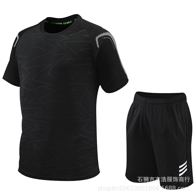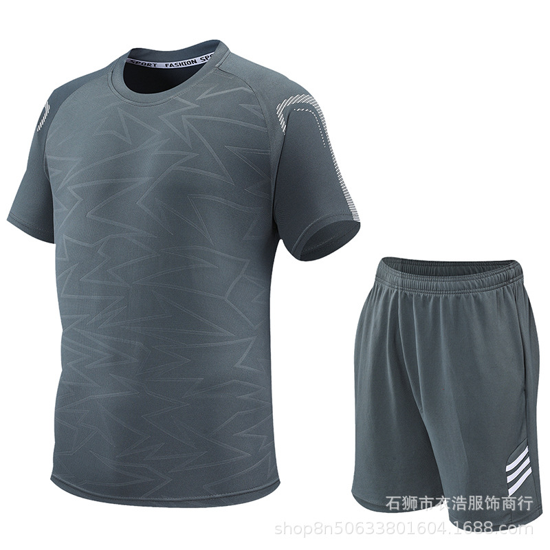 크로스 보더 스포츠 세트 남자의 여름 농구 스포츠웨어 새로운 스포츠웨어 짧은 소매 피트니스 반바지 빠른 건조 옷을 실행스토어 가기