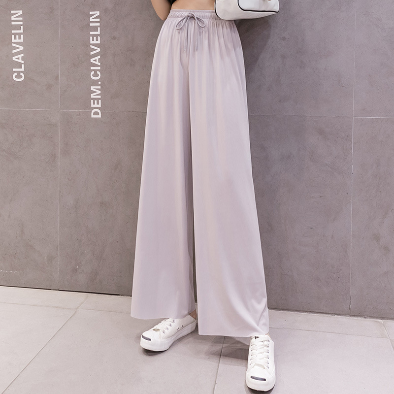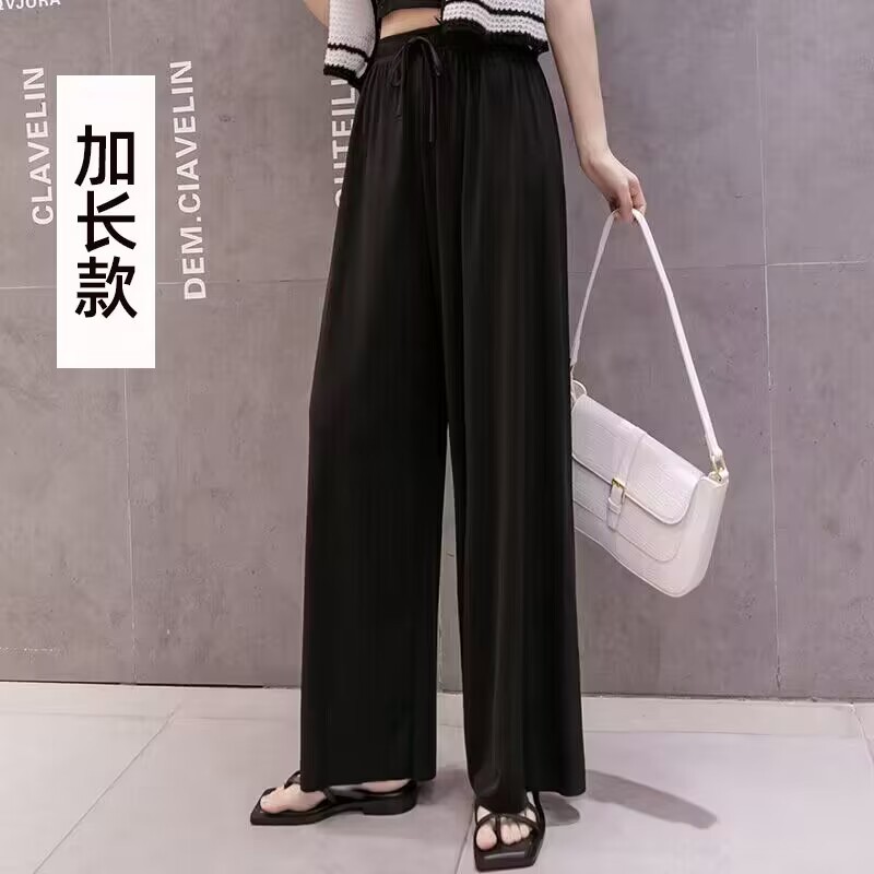 아이스 실크 와이드 레그 팬츠 여성 플러스 사이즈 뚱뚱한 여동생 200kg 플러스 지방 드레이프 9 점 스트레이트 튜브 느슨한 슬림 걸레 바지