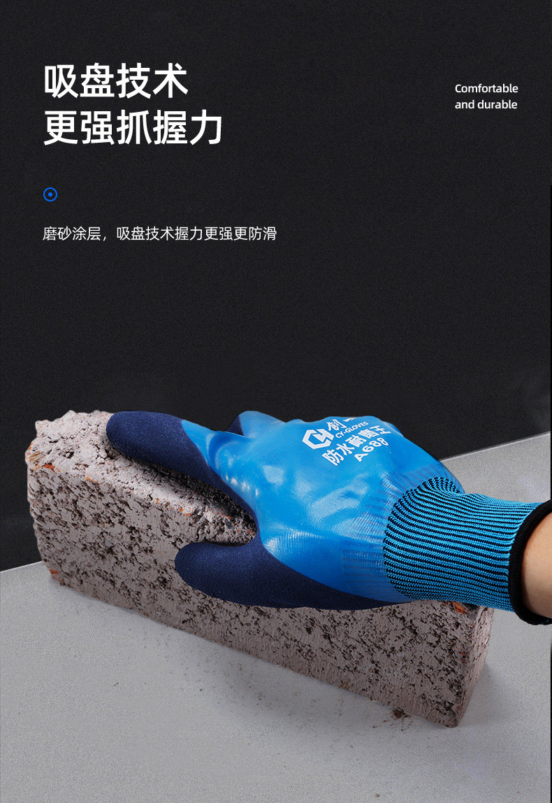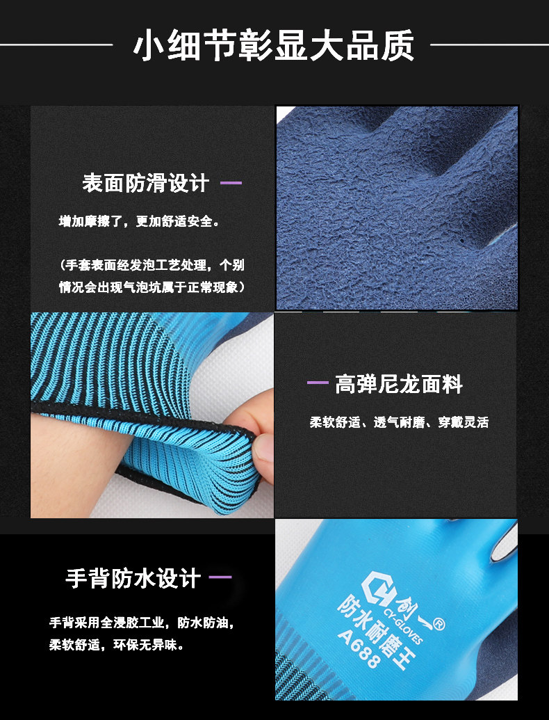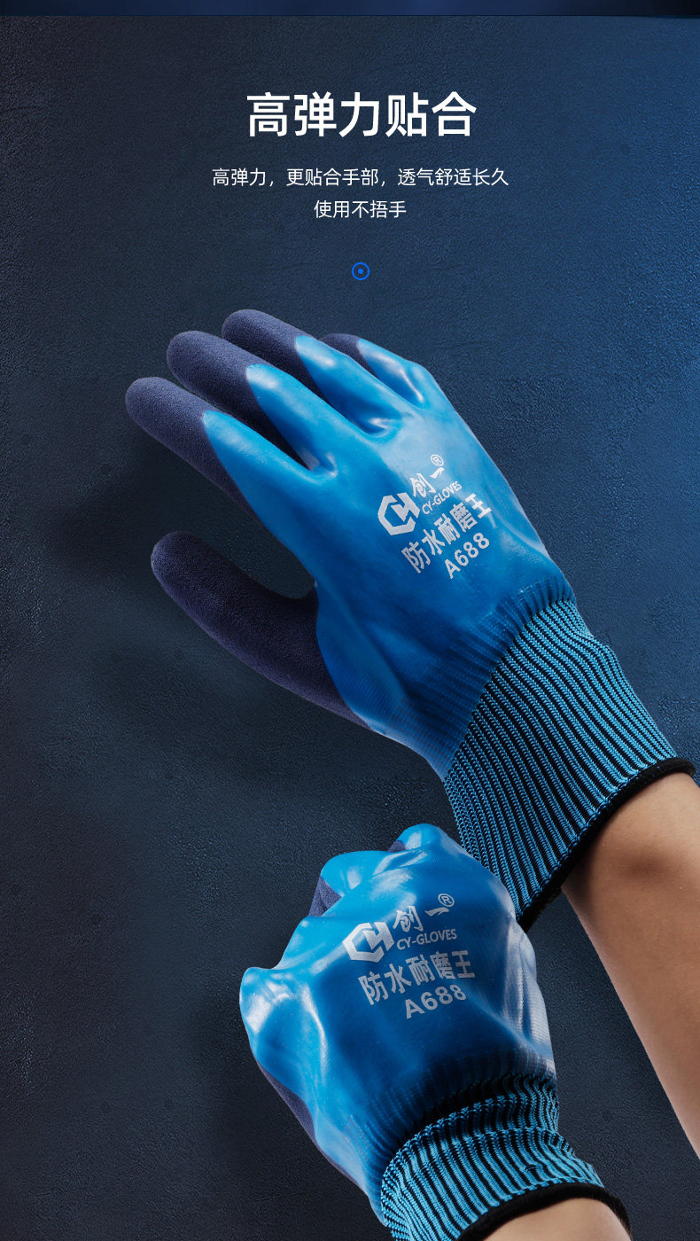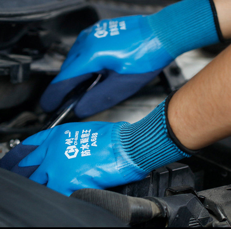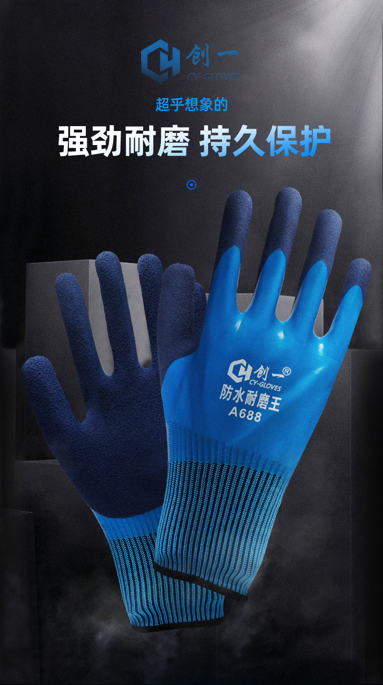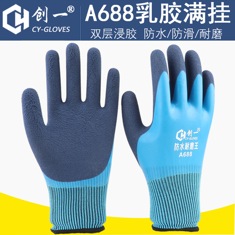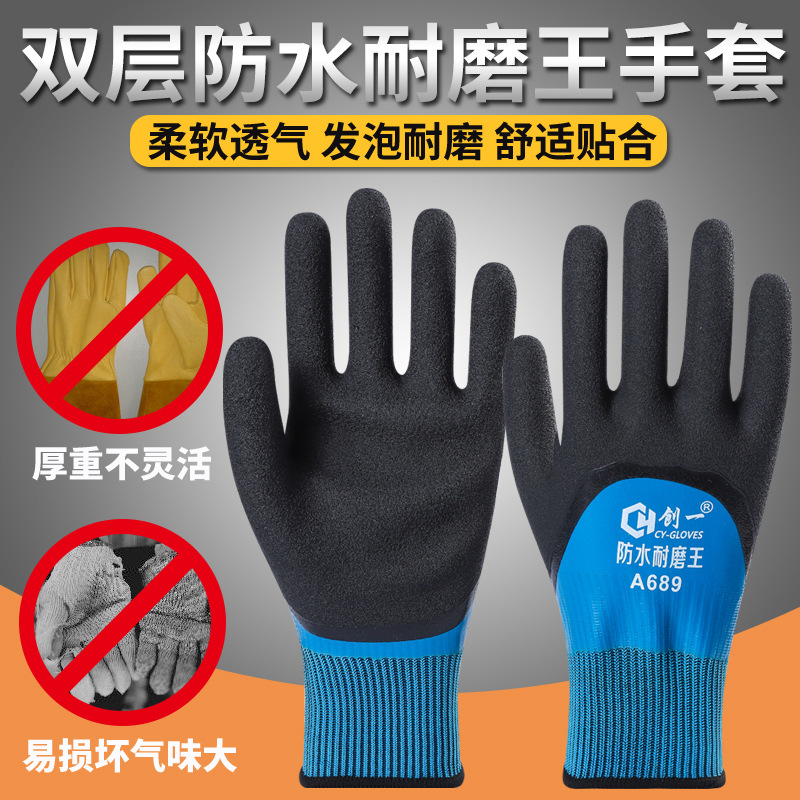 공장 도매 전면 고무 작업용 장갑, 내마모성 작업용 두꺼운 방수 미끄럼 방지 장갑, 건설 현장 작업용스토어 가기