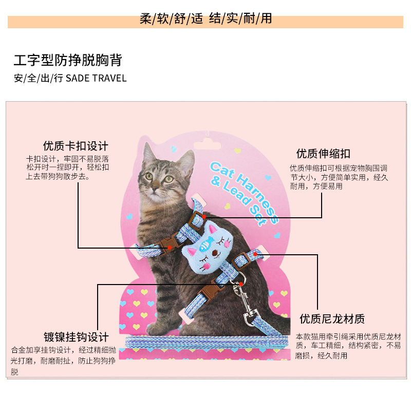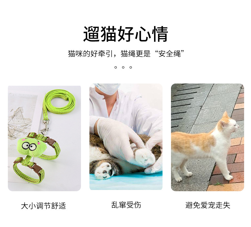 애완 동물 용품 아마존 새로운 I 형 고양이 워킹 로프 휴식 방지 편안한 고양이 견인 조정 가능한 고양이 로프스토어 가기
