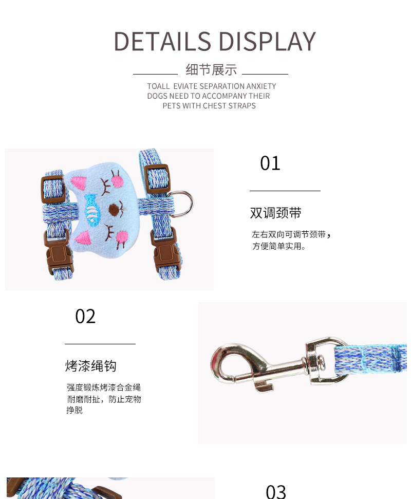 애완 동물 용품 아마존 새로운 I 형 고양이 워킹 로프 휴식 방지 편안한 고양이 견인 조정 가능한 고양이 로프