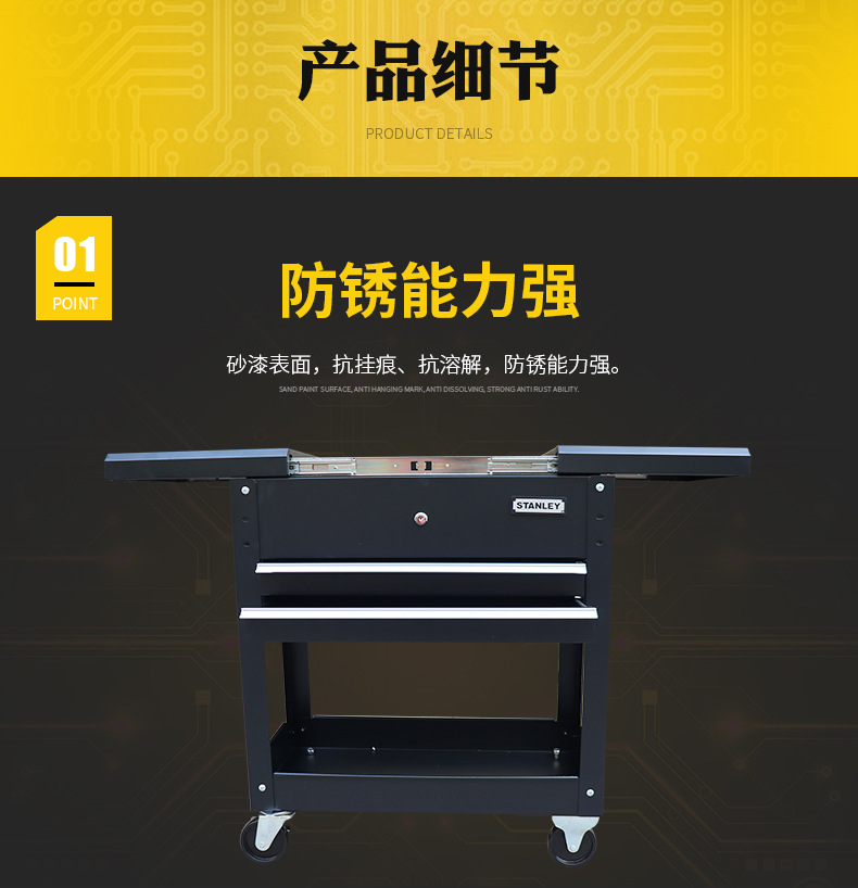 샌드 페인트 표면, 용해 방지 및 녹 방지 기능을 갖춘 스탠리 서랍형 공구 카트
