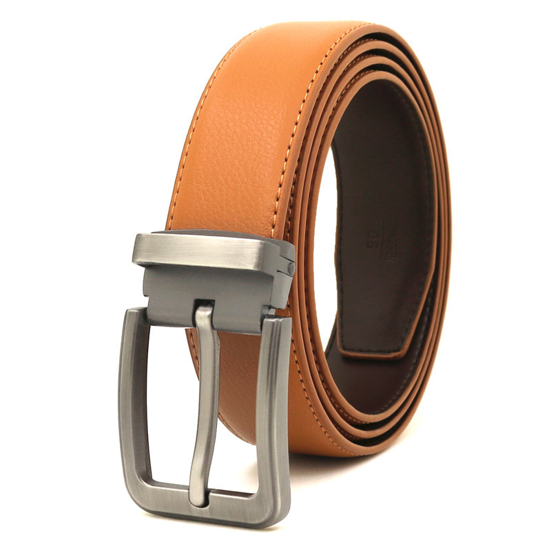 새로운 패션 남성용 가죽 벨트 제조 업체 레저 핀 버클 벨트 2 층 가죽 블루 화이트 크로스 보더 대외 무역스토어 가기