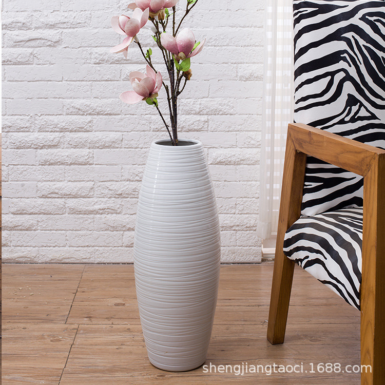 현대 간단한 Jingdezhen 세라믹 대형 꽃병 3 종 세트 화이트 세라믹 바닥 꽃병 장식 부드러운 도매