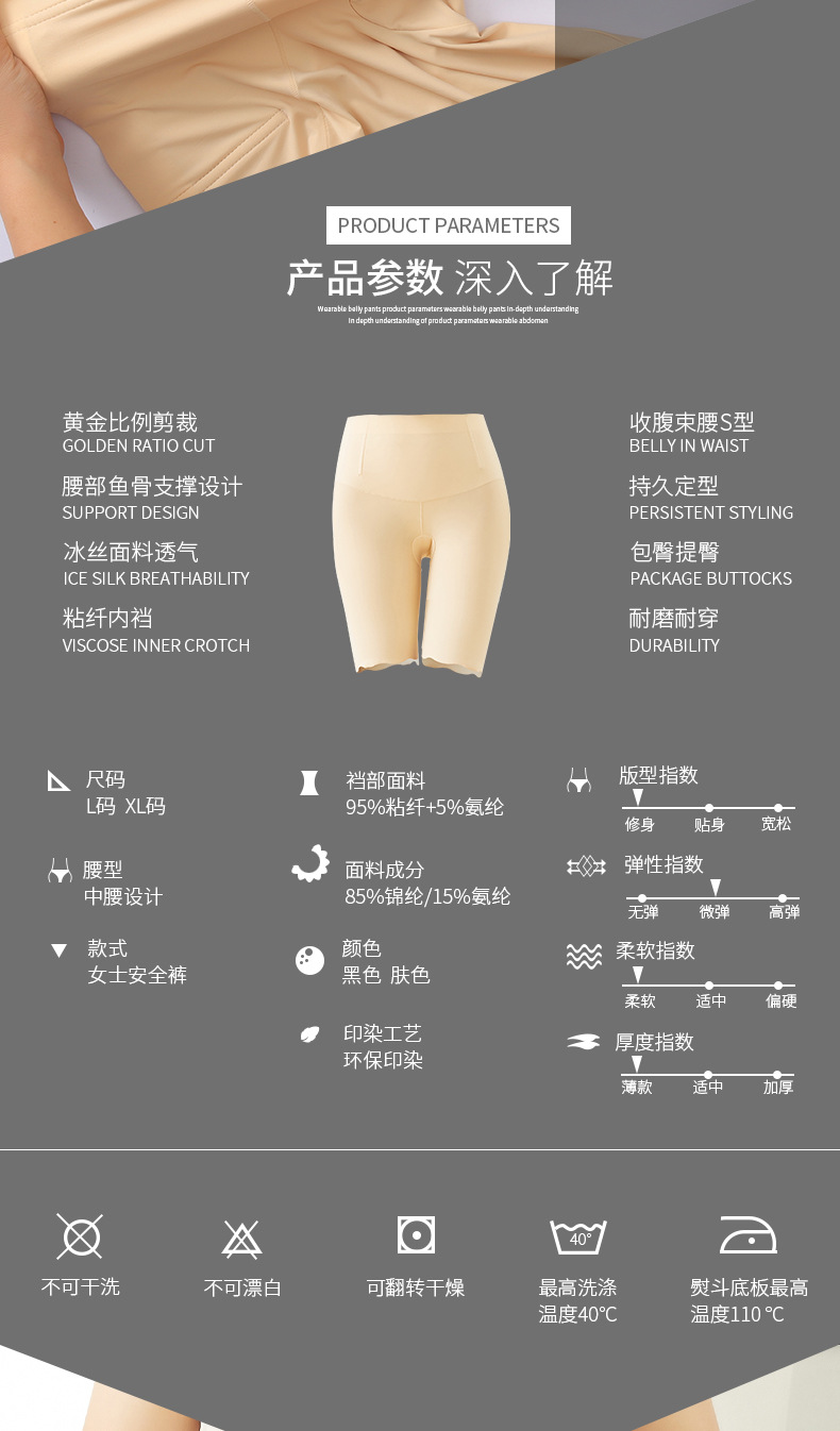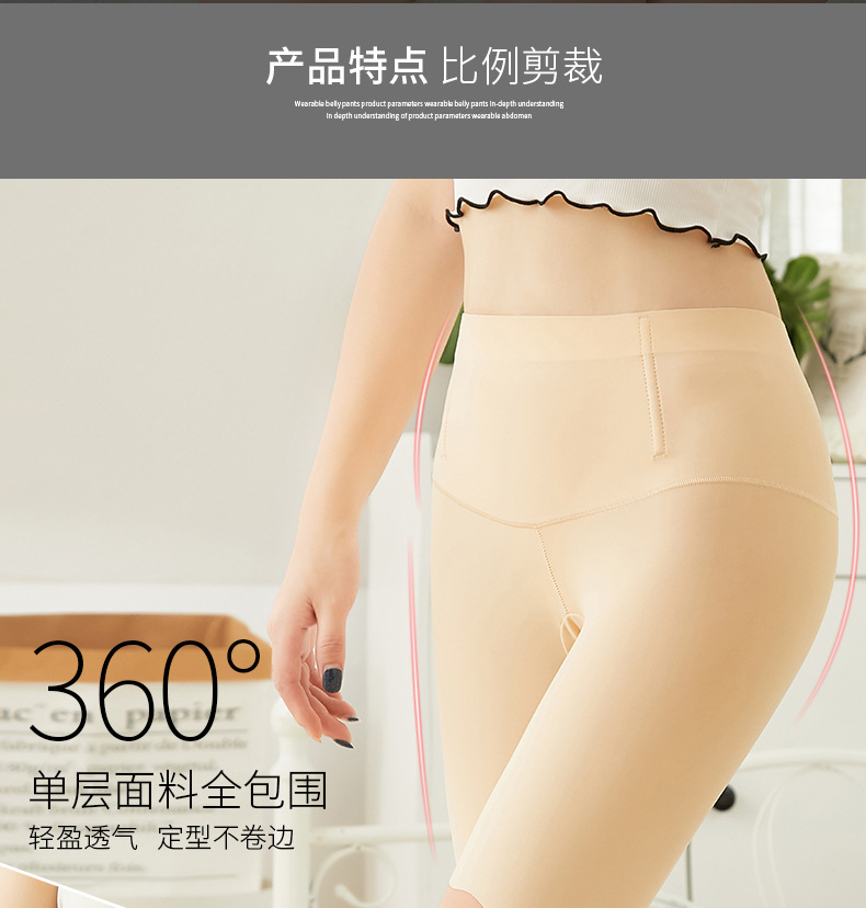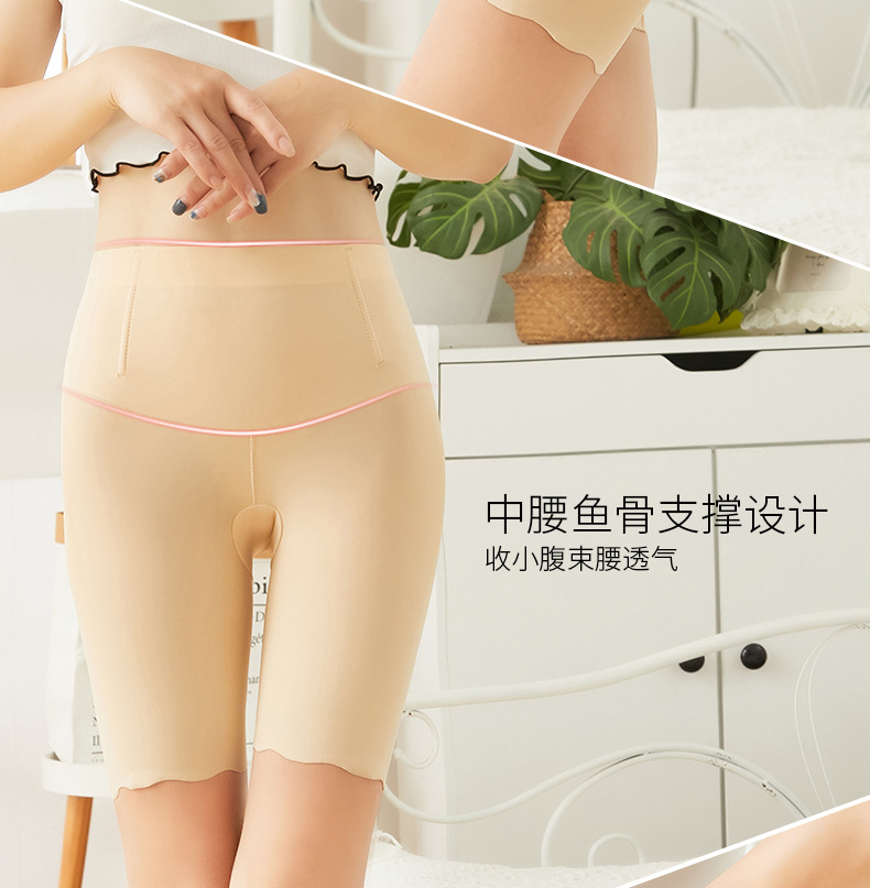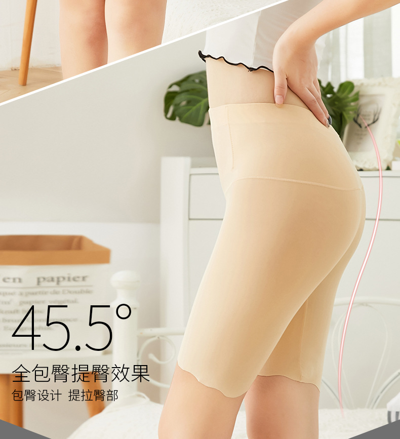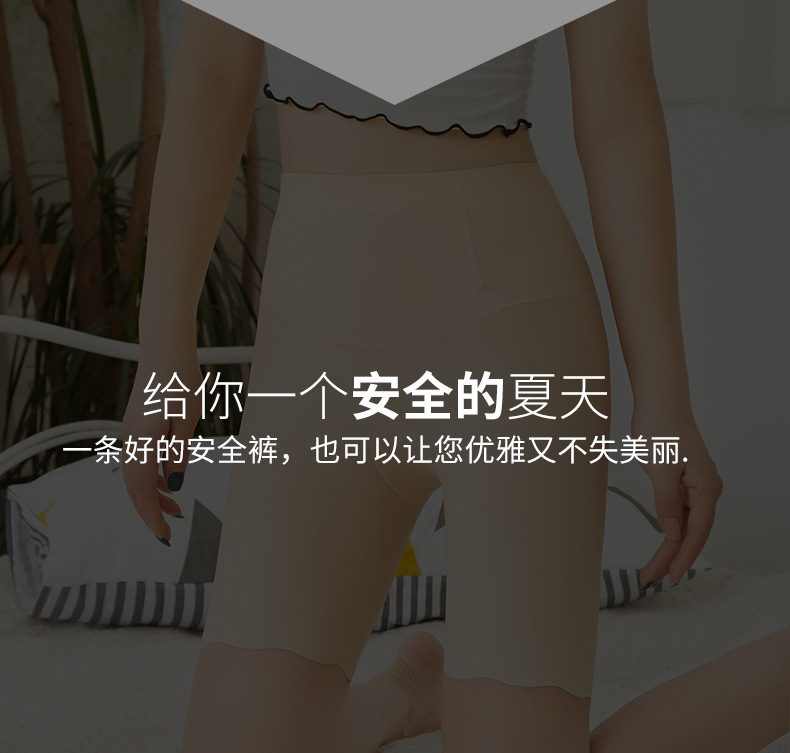 공장 직공급 하이 웨이스트 벨리 아이스 실크 원활한 안전 바지 여성용 면 가랑이 안티 라이트 여성용 3 점 레깅스스토어 가기